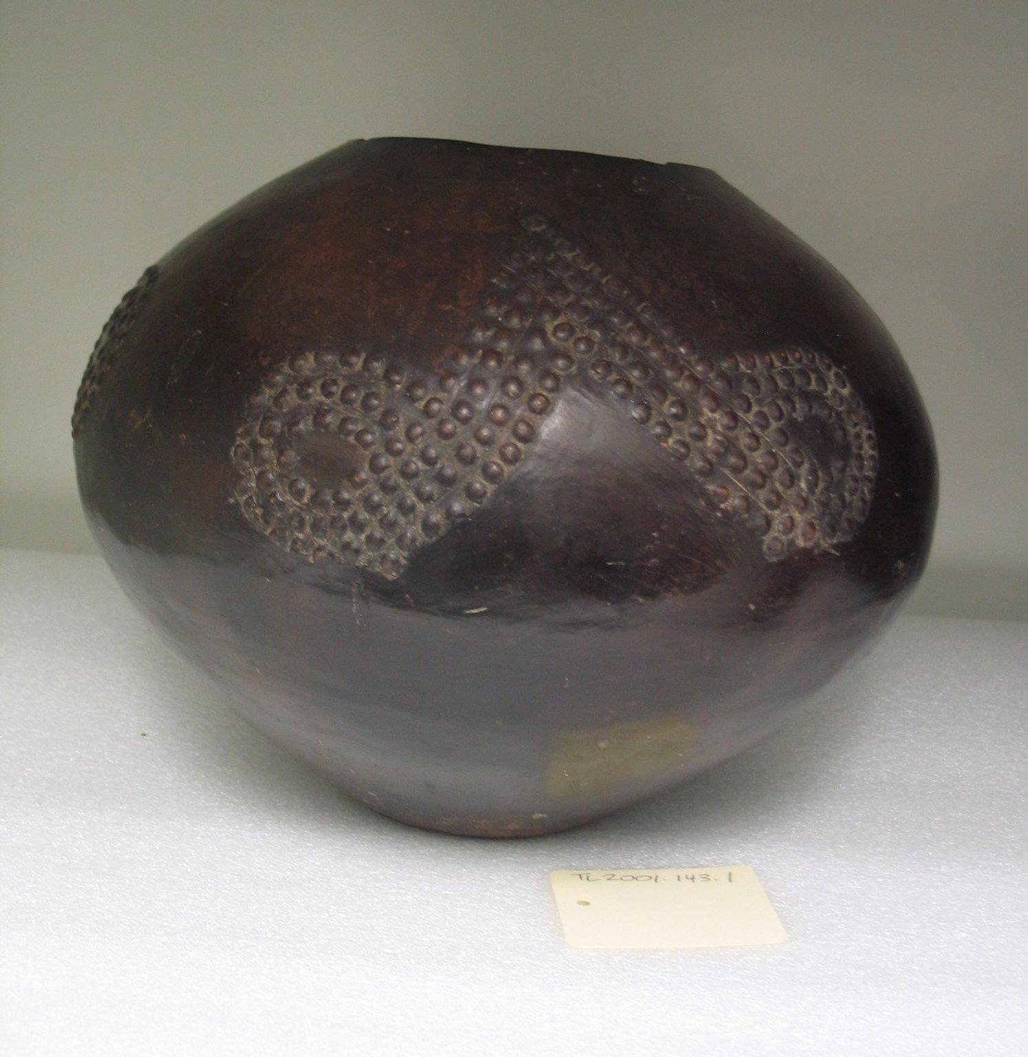 Zulu; Northern Nguni. Ukhamba (Beer Vessel), early 20th century. Terracotta, 10 1/2 x 13 3/4 x 13 3/4in. (26.7 x 34.9 x 34.9cm). Brooklyn Museum, Gift of Eugene and Harriet Becker, 2001.121.1. (Photo: Brooklyn Museum)