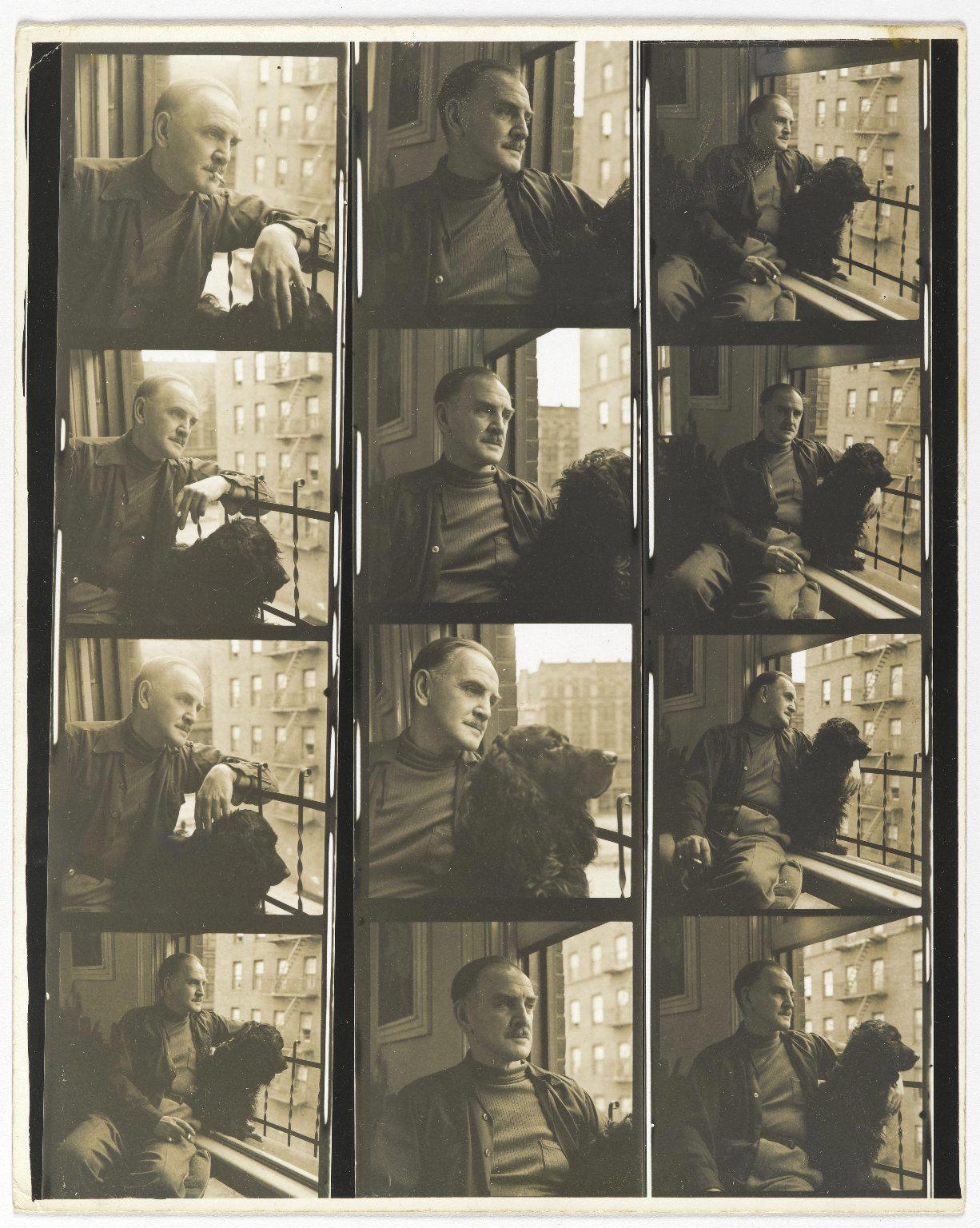 Consuelo Kanaga (American, 1894–1978). Milton Avery, 1950. Gelatin silver print, 10 × 8 in. (25.4 × 20.3 cm) contact of 12 exposures: 2 1/4 × 2 1/4 in. (5.7 × 5.7 cm) frame: 20 1/16 × 15 1/16 × 1 1/2 in. (51 × 38.3 × 3.8 cm). Brooklyn Museum, Gift of Wallace B. Putnam from the Estate of Consuelo Kanaga, 82.65.129. copyright transferred to Brooklyn Museum by the Estate of Wallace Putnam. (Photo: Brooklyn Museum)