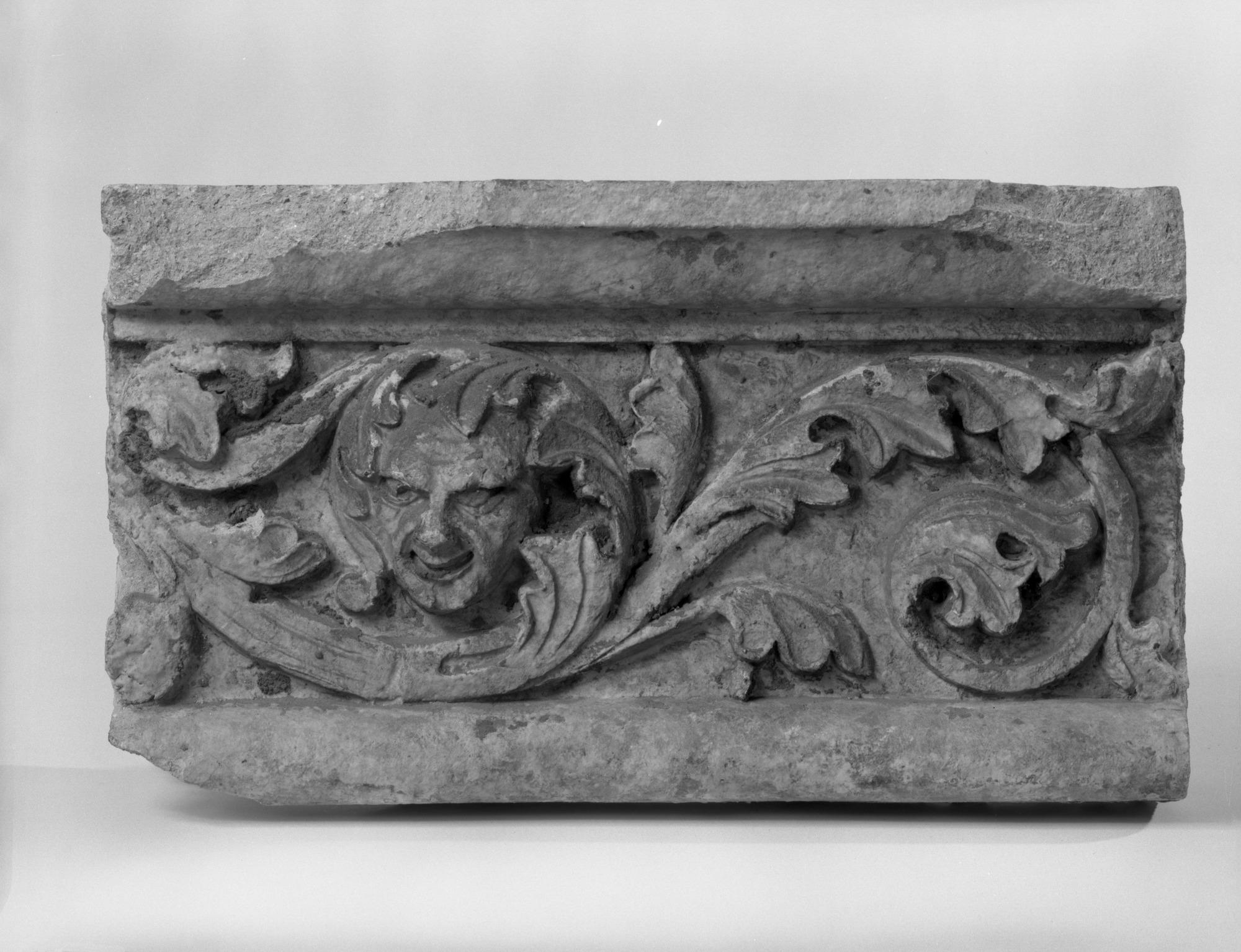 Unknown Artist (American). Foliate Border with Head, from Turner Towers, 135 Eastern Parkway, Brooklyn, 1928. Cast Stone: cement composition and vitreous enamel, Other: 9 x 8 x 9 in. (22.9 x 20.3 x 22.9 cm). Brooklyn Museum, Gift of Charles Free, 81.209.10. (Photo: Brooklyn Museum)