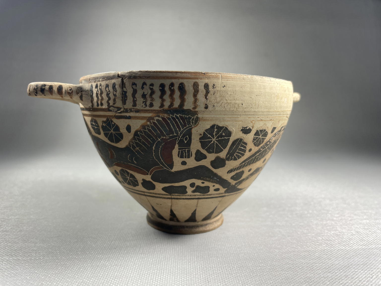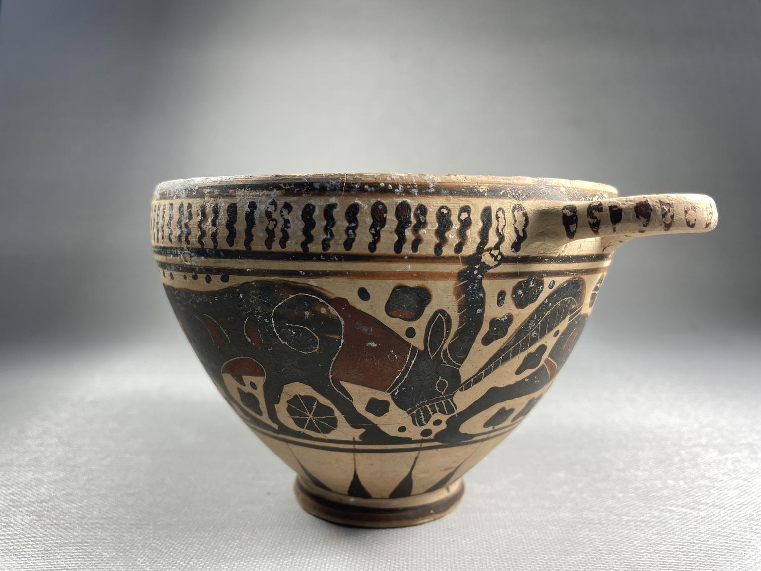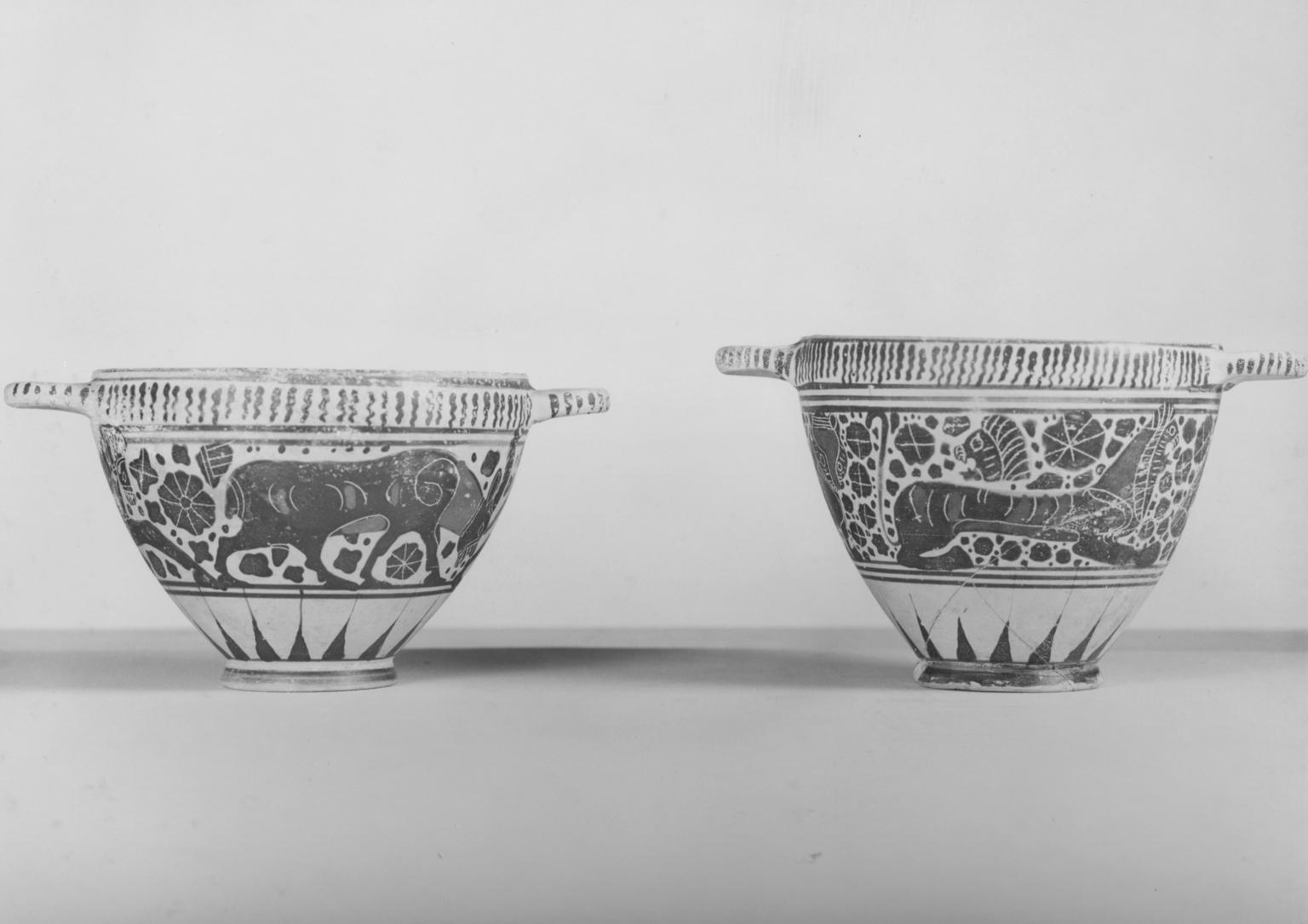 Greek; Corinthian. Skyphos or Kotyle, 6th century B.C.E.. Clay, slip, 3 9/16 × 4 13/16 × 7 1/16 in. (9 × 12.3 × 18 cm). Brooklyn Museum, Purchase gift of Robert B. Woodward and Carll H. de Silver, 04.7. (Photo: Brooklyn Museum)