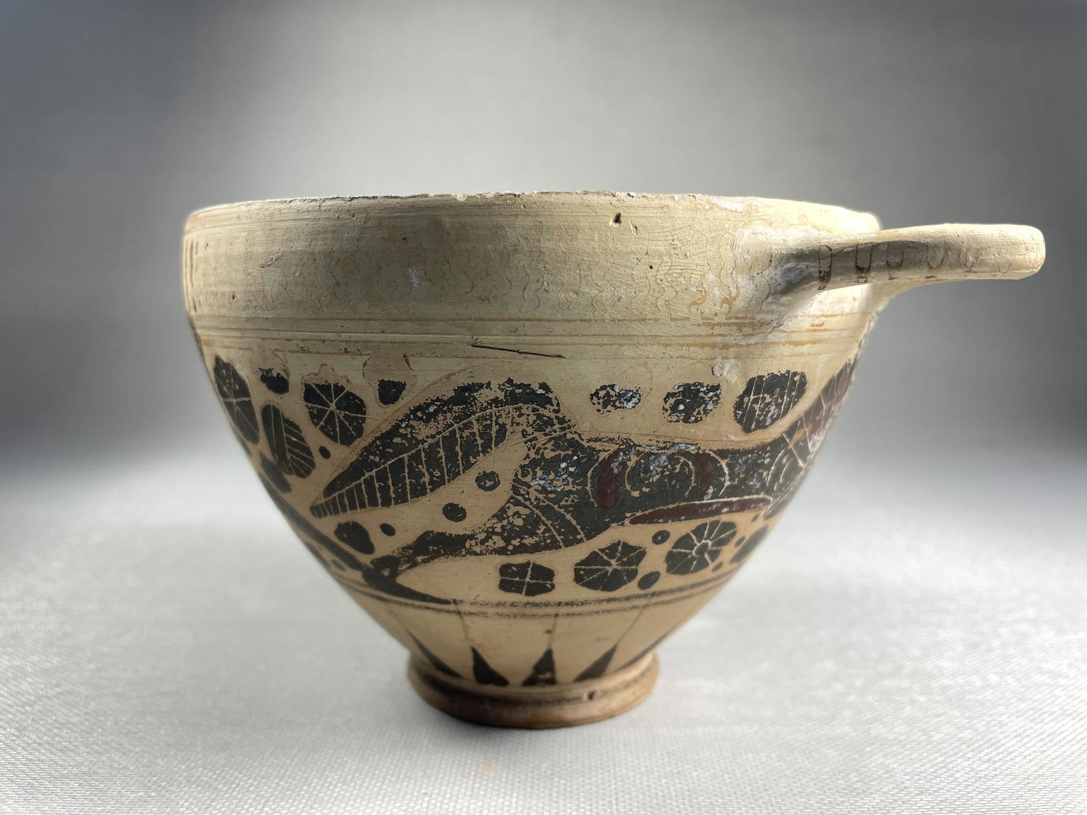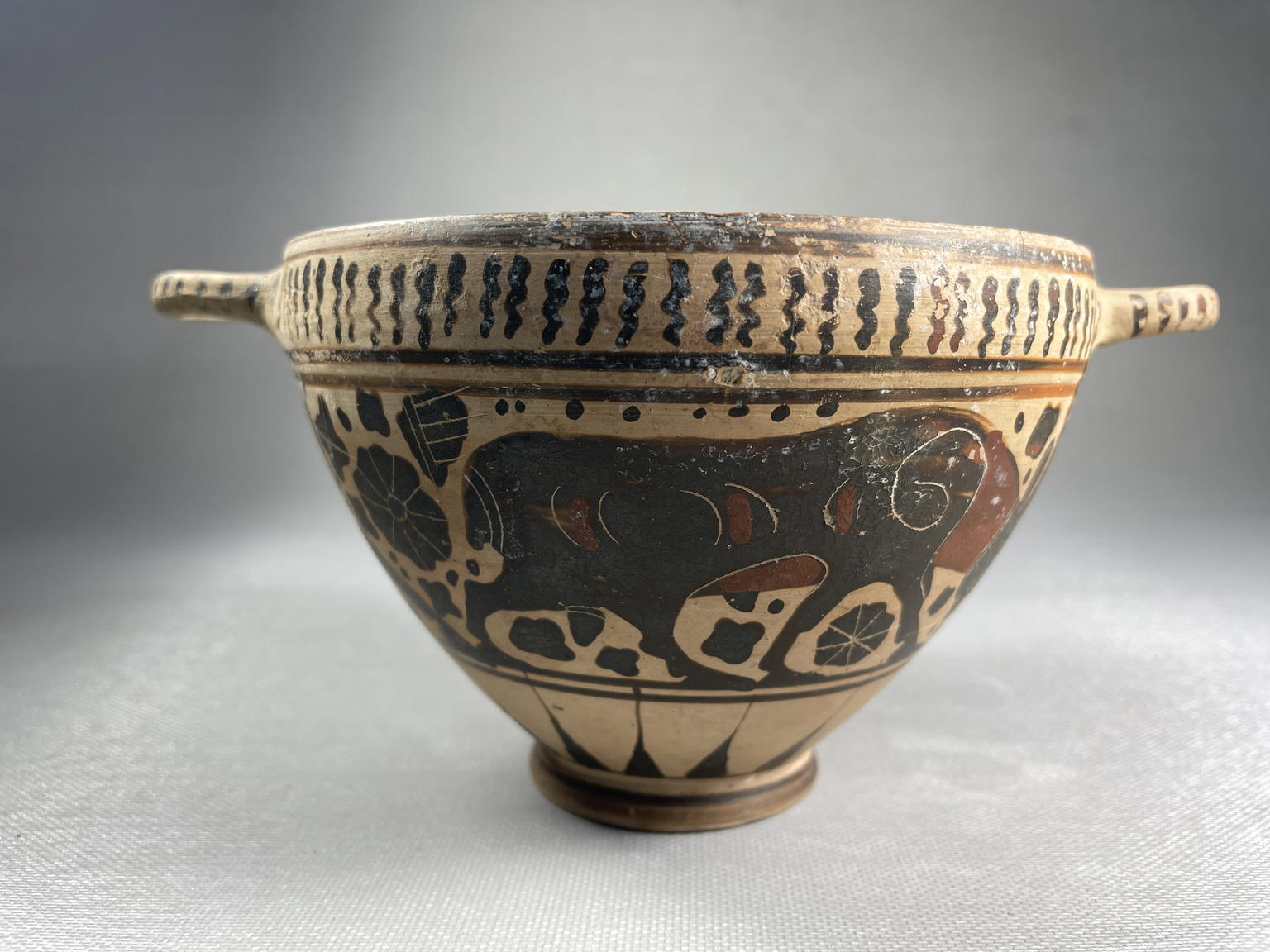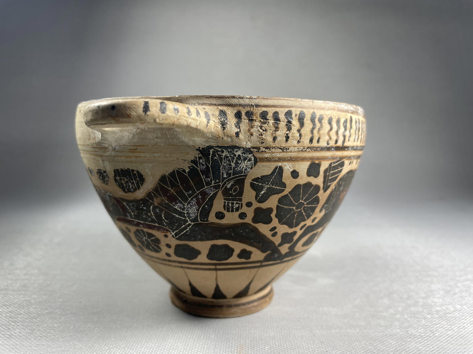 Greek; Corinthian. Skyphos or Kotyle, 6th century B.C.E.. Clay, slip, 3 9/16 × 4 13/16 × 7 1/16 in. (9 × 12.3 × 18 cm). Brooklyn Museum, Purchase gift of Robert B. Woodward and Carll H. de Silver, 04.7. (Photo: Brooklyn Museum)