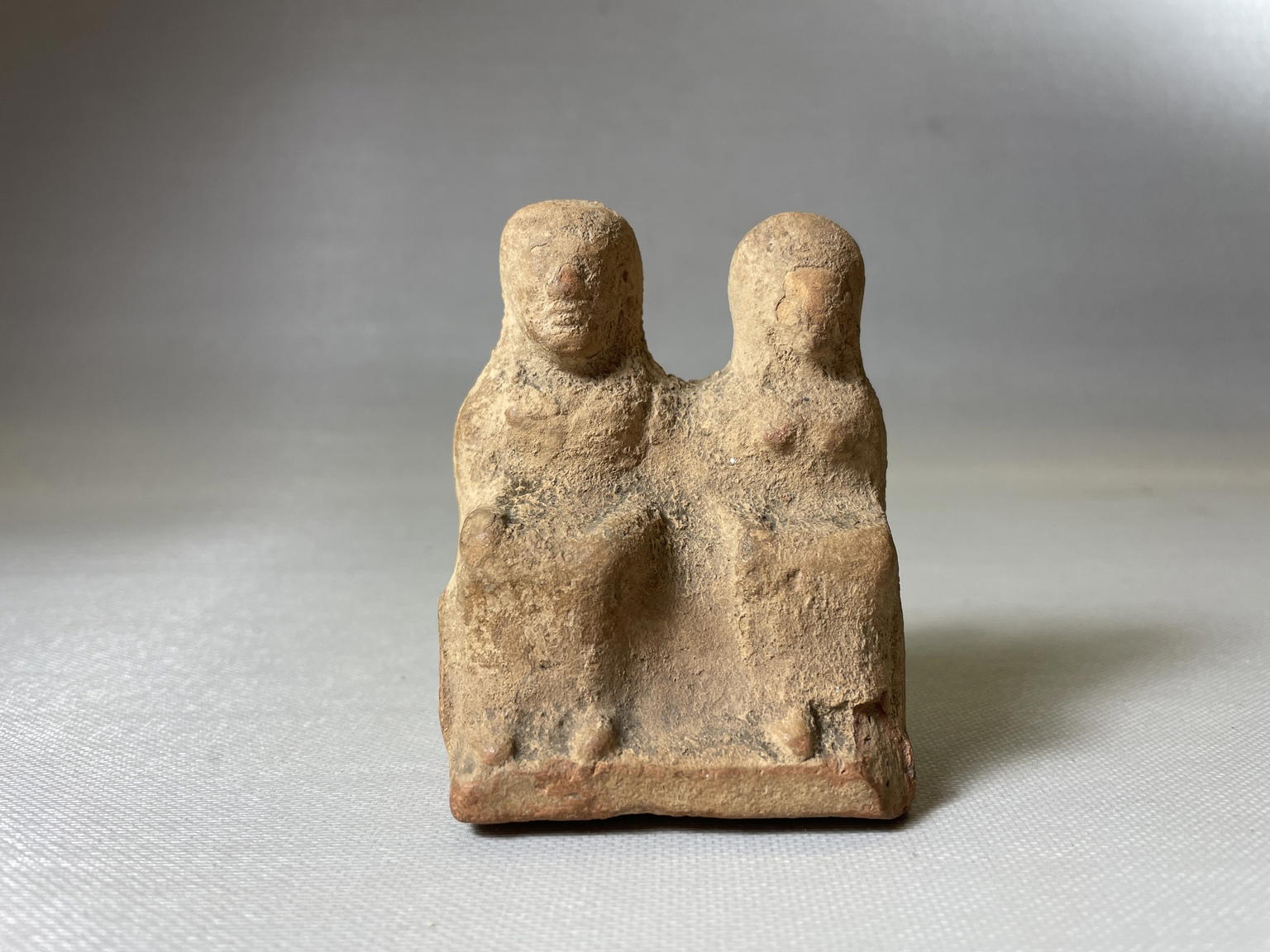 Possibly Greek. Votive Statuette of Brick Red Terracotta, 4th century B.C.E.. Clay, slip, pigment, 3 1/4 × 2 3/8 × 1 3/4 in. (8.3 × 6 × 4.5 cm). Brooklyn Museum, Purchase gift of Robert B. Woodward and Carll H. de Silver, 04.18. (Photo: Brooklyn Museum)
