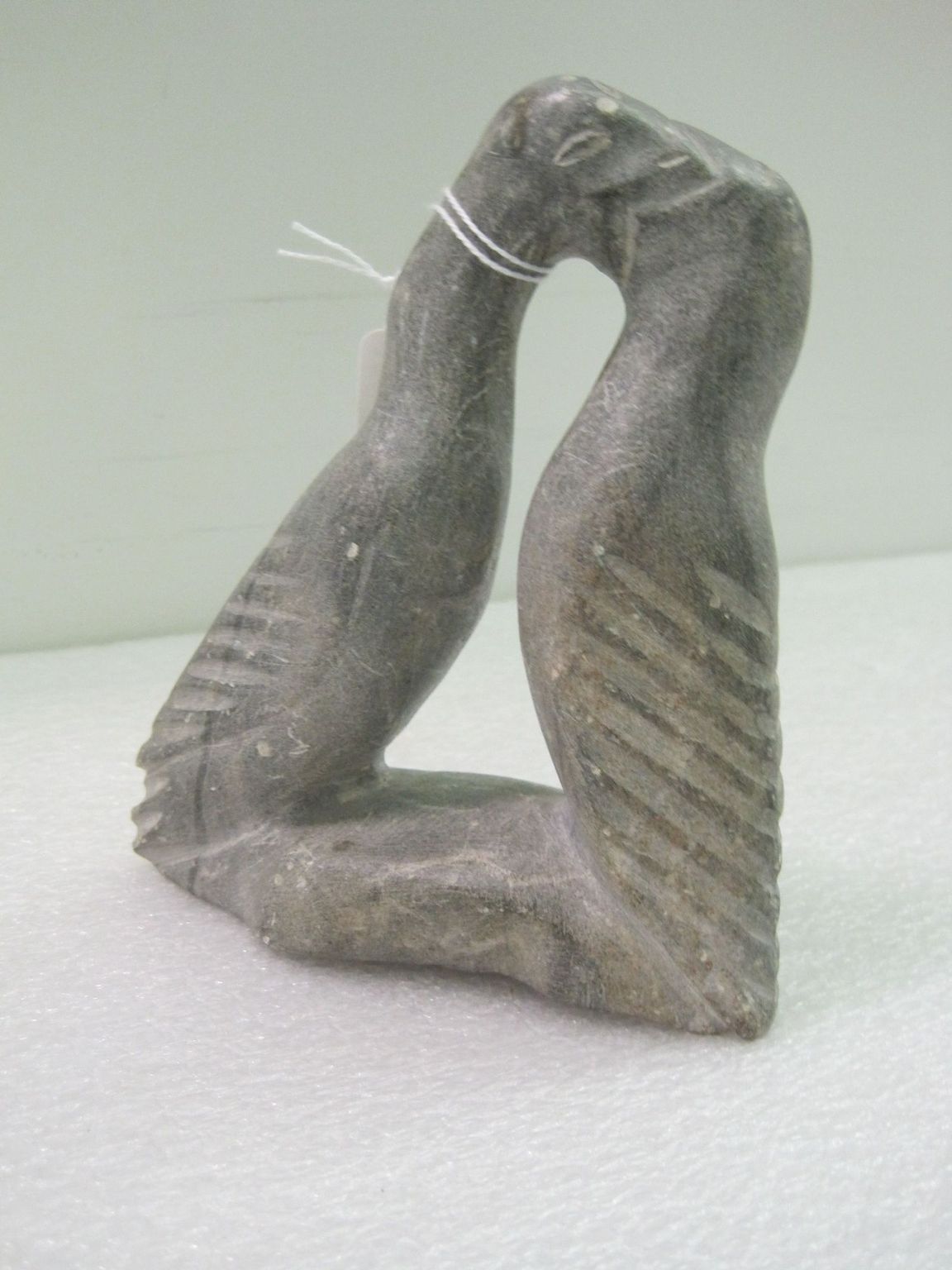 Inuit. Two Loons, One Feeding the Other, 1950–1980. Gray stone, 6 1/4 x 5 1/2 x 2 1/8 in. (15.9 x 14 x 5.4 cm). Brooklyn Museum, Hilda and Al Schein Collection, 2004.79.23.