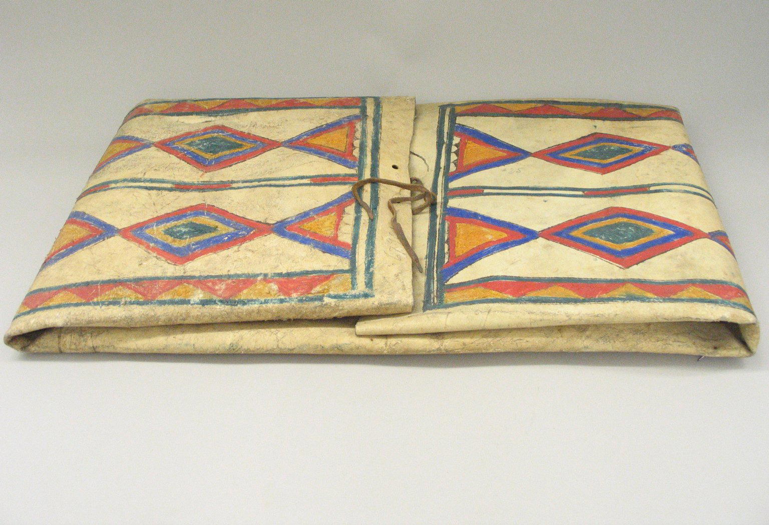 Arapaho. Parfleche, Buffalo rawhide, paint, folded: 15 1/4 x 29 x 2 1/2 in. (38.7 x 73.7 x 6.4 cm). Brooklyn Museum, Brooklyn Museum Collection, X1115.2. (Photo: Brooklyn Museum)