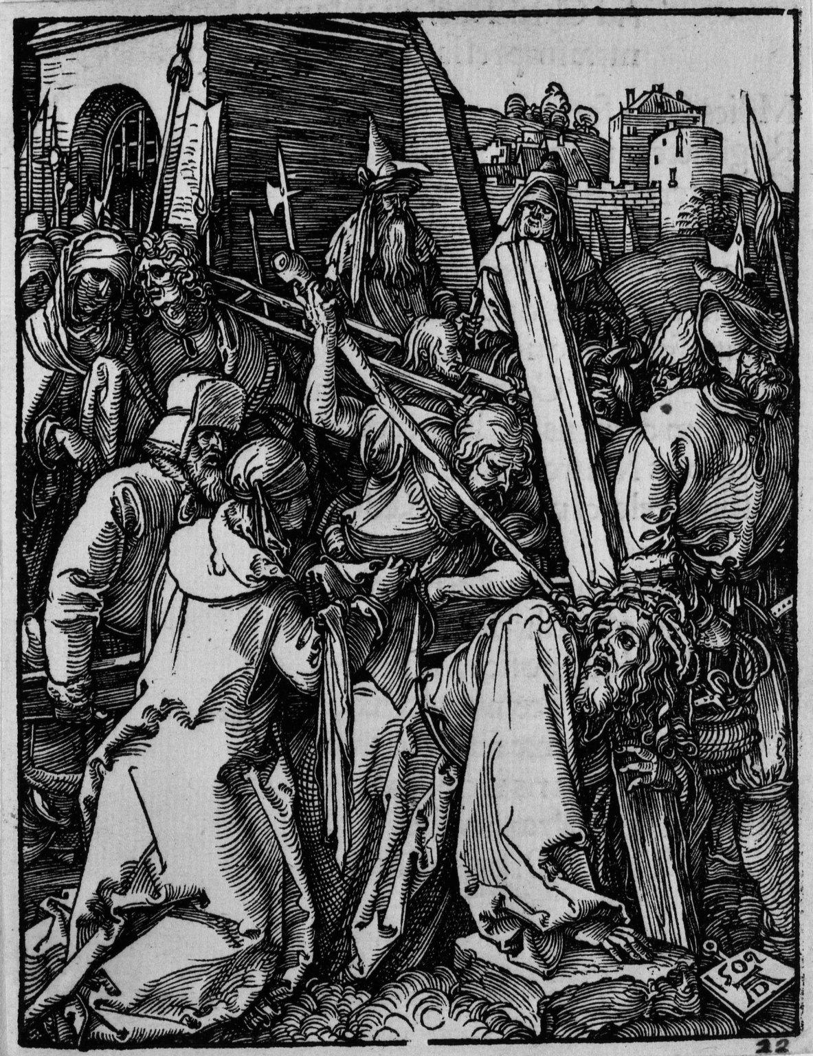 Albrecht Dürer (German, 1471–1528). Christ Carrying the Cross, 1509; edition of 1511. Woodcut on laid paper, Sheet: 5 3/16 x 4 in. (13.2 x 10.2 cm) Image: 5 1/16 x 3 13/16 in. (12.9 x 9.7 cm). Brooklyn Museum, Gift of Mrs. Howard M. Morse, 56.105.22. (Photo: Brooklyn Museum)