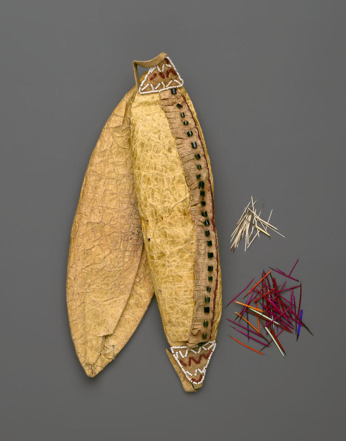 Plains; possibly Lakota, Sioux. Sewing Kit, late 19th century. Animal bladder, beads, porcupine quills, sinew, 4 x 11 1/2 in. (10.2 x 29.2 cm). Brooklyn Museum, Brooklyn Museum Collection, X1126.13. (Photo: Brooklyn Museum)