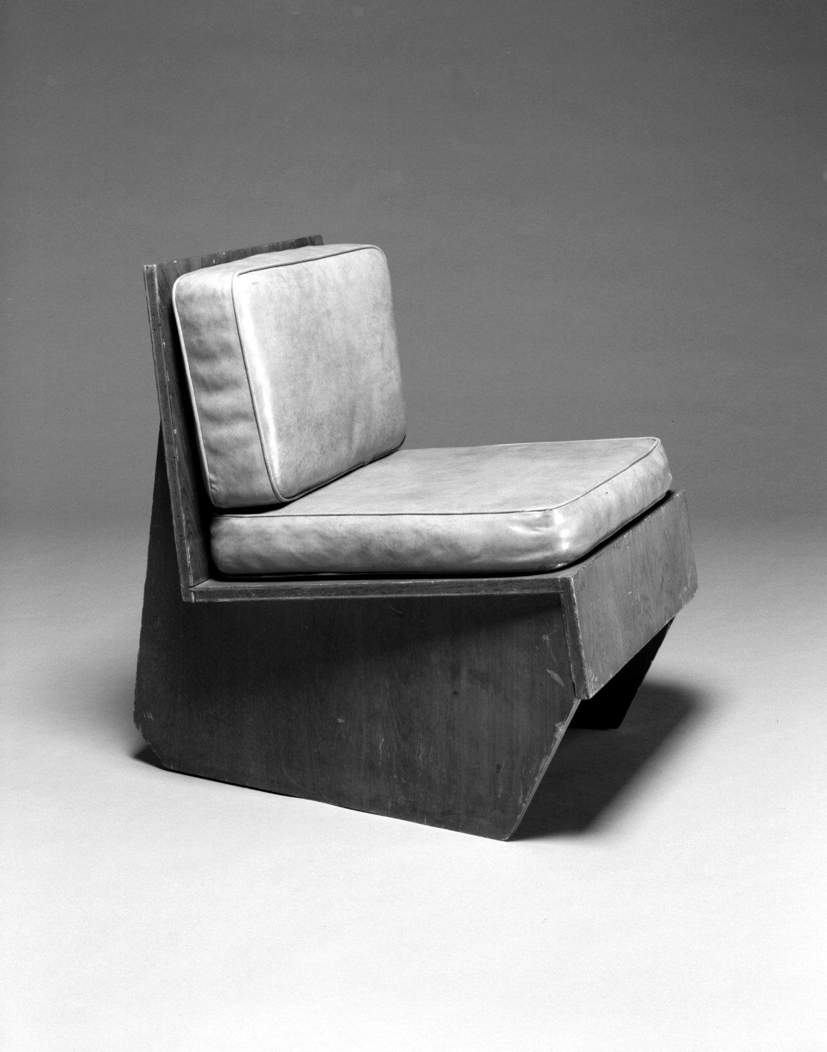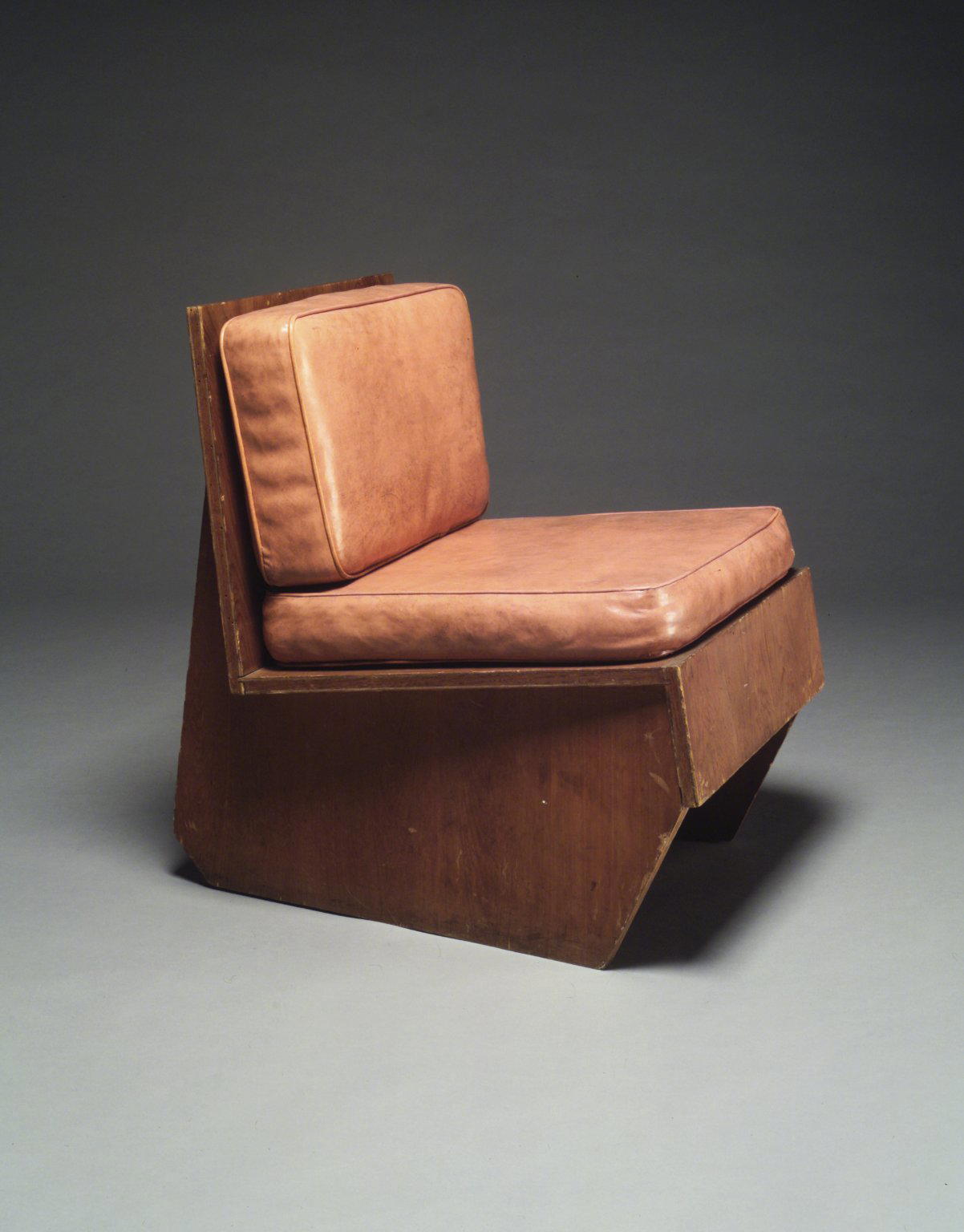 Frank Lloyd Wright (American, 1867–1959). Chair, ca. 1940. Laminated plywood, vinyl, 28 x 21 x 28 in. (71.1 x 53.3 x 71.1 cm). Brooklyn Museum, Gift of I. Wistar Morris, III, 84.279a-c. (Photo: Brooklyn Museum)