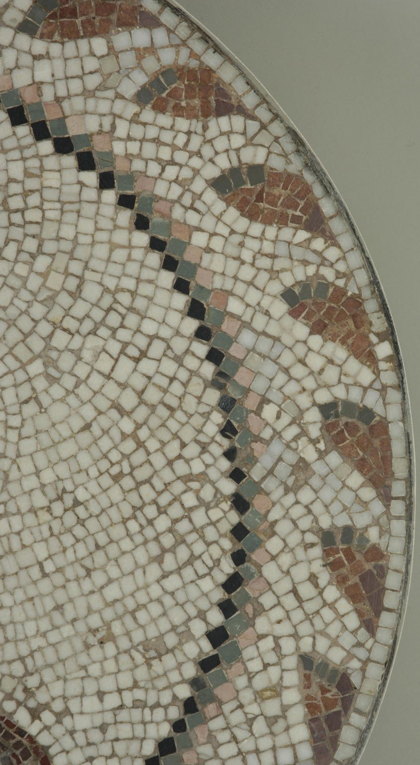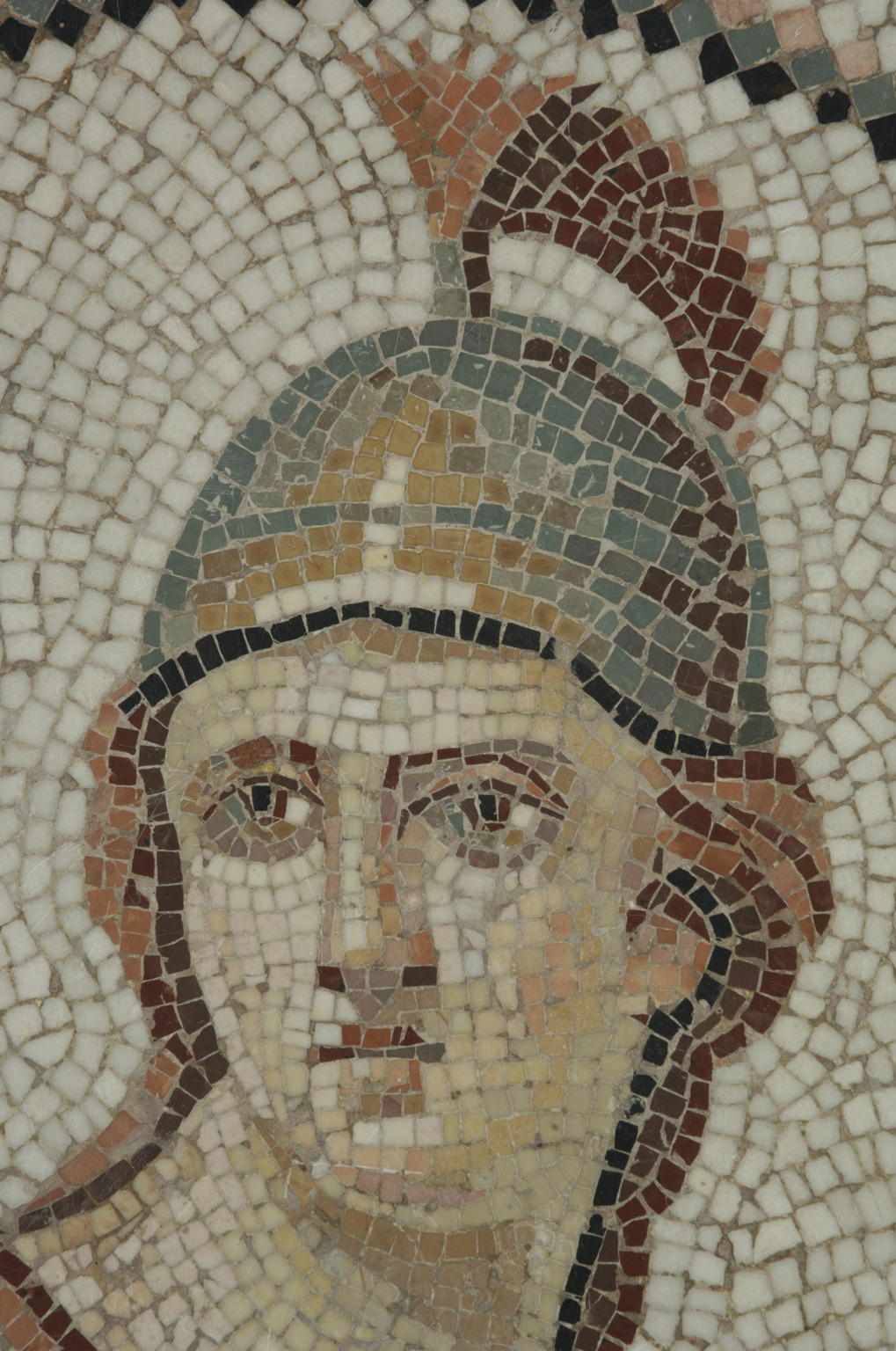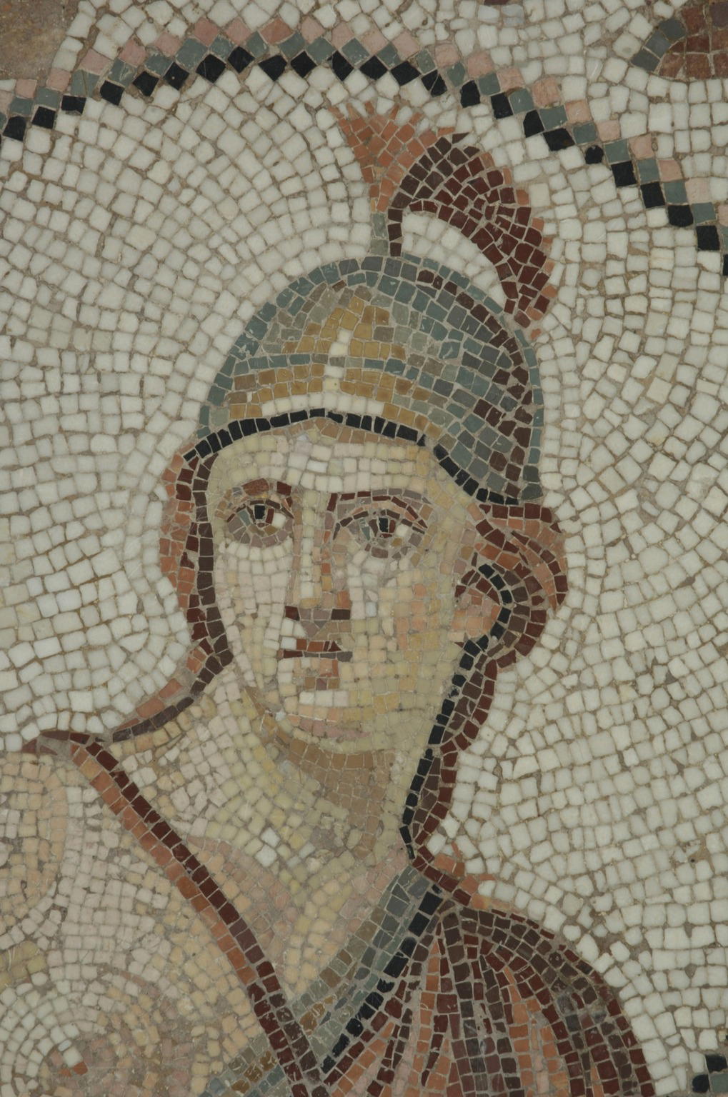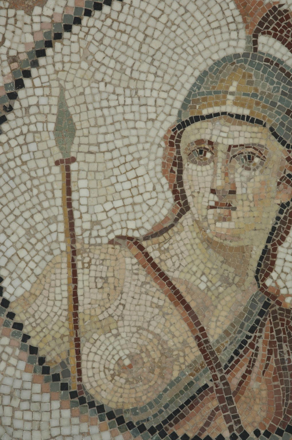 Roman. Mosaic of Personification of Roma in a Medallion, 1st–2nd century C.E.. Stone and mortar, 1 1/4 x 21 1/4 in. (3.2 x 53.9 cm) 37 lb. (16.8kg). Brooklyn Museum, Museum Collection Fund, 05.29. (Photo: Brooklyn Museum)