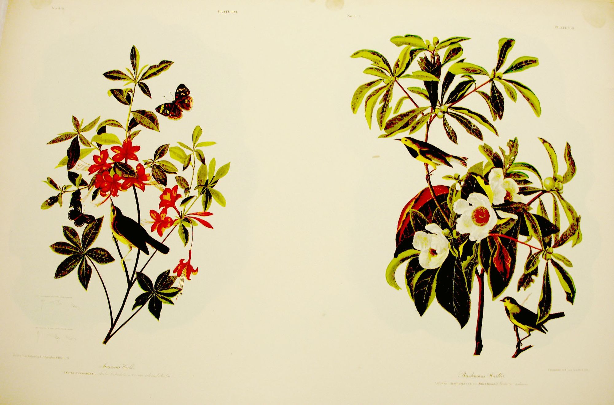 John James Audubon (American, born Haiti, 1785–1851). Swainson's Warbler and Backman's Warbler, 1861. Chromolithograph. Brooklyn Museum, Gift of Seymour R. Husted Jr., 06.339.78a-b. (Photo: Brooklyn Museum)