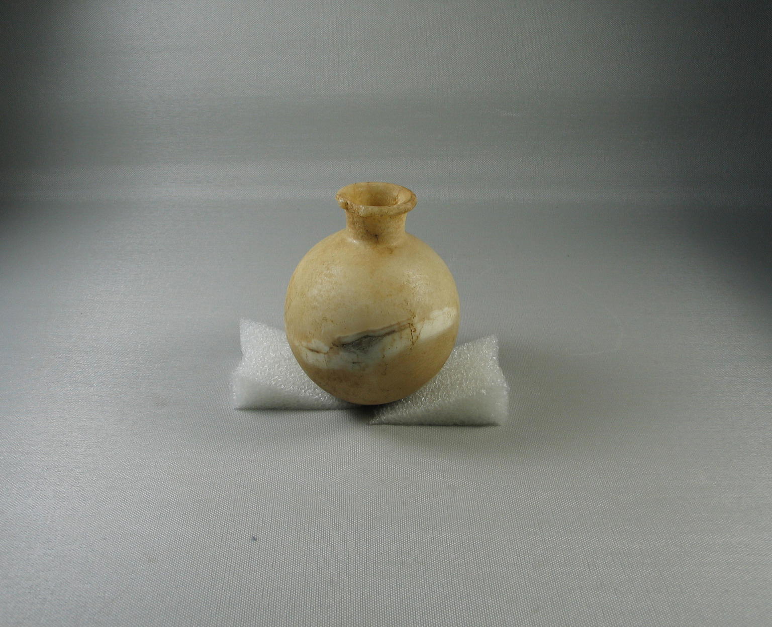 Undecorated Vase, Globular Shape, ca. 2350–1630 B.C.E.. Egyptian alabaster (calcite), 4 5/8 × Diam. 3 3/4 in. (11.8 × 9.5 cm). Brooklyn Museum, Charles Edwin Wilbour Fund, 05.358.