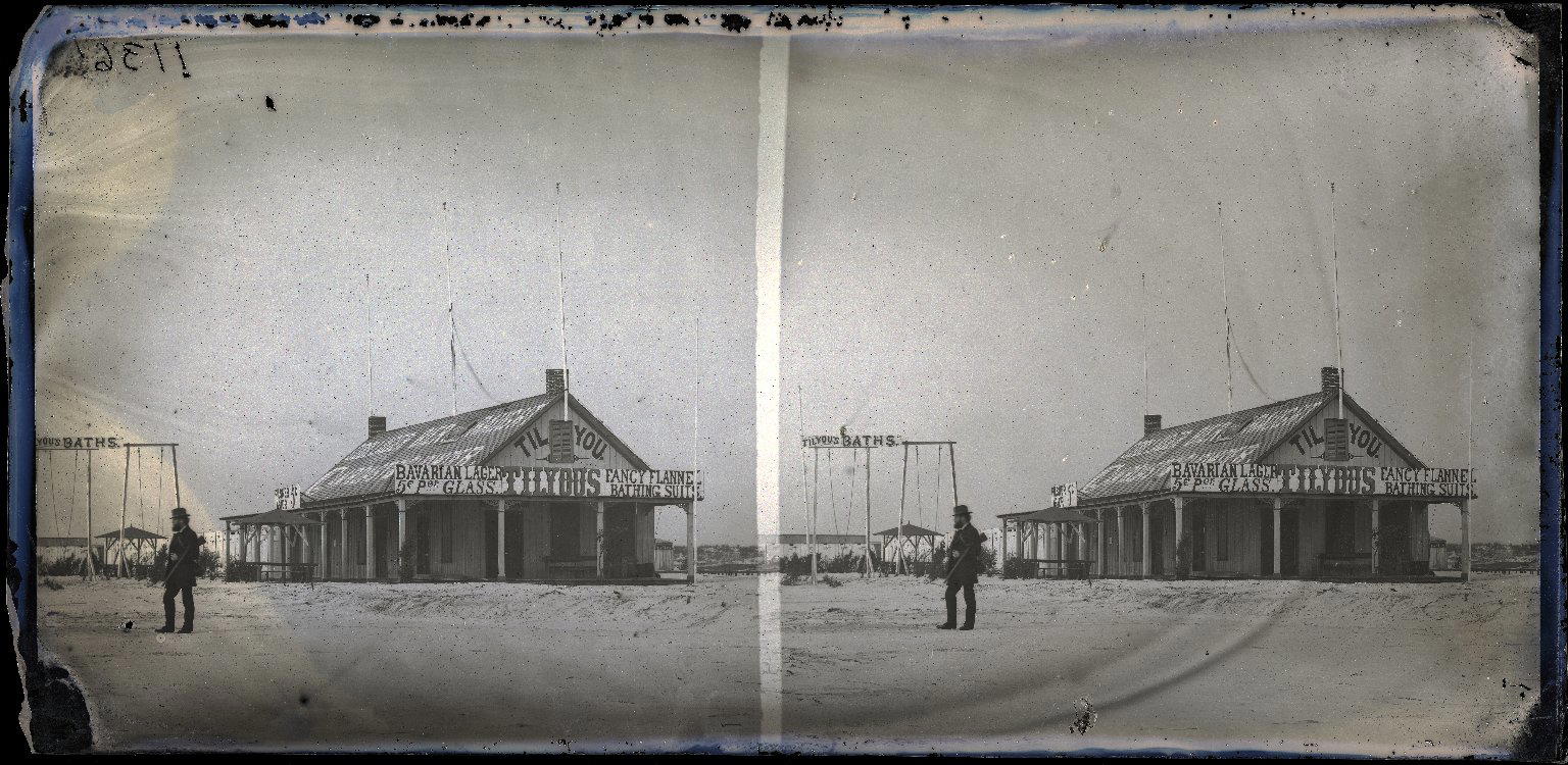 George Bradford Brainerd (American, 1845–1887). The Tilyou House, Coney Island, November 30, 1874. Collodion silver glass wet plate negative, 3 1/4 x 6 3/4 in. (8.3 x 17.1 cm). Brooklyn Museum, Brooklyn Museum/Brooklyn Public Library, Brooklyn Collection, 1996.164.2-1136. (Photo: Brooklyn Museum)