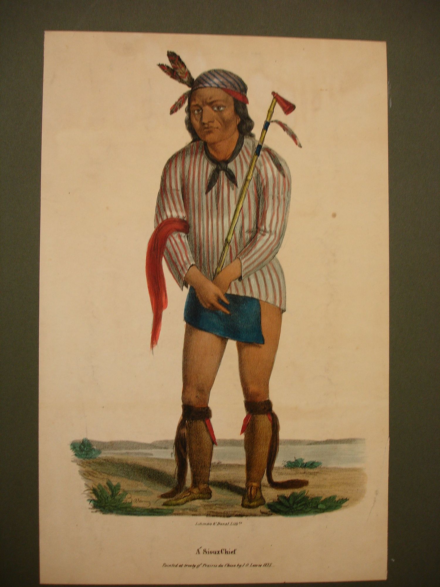 James Otto Lewis (American, 1799 – 1858). A Sioux Chief, issued January 1836. Lithograph with watercolor on paper, Sheet: 15 3/8 x 9 3/4 in. (39.1 x 24.8 cm). Brooklyn Museum, Brooklyn Museum Collection, X1042.147.16. (Photo: Brooklyn Museum)