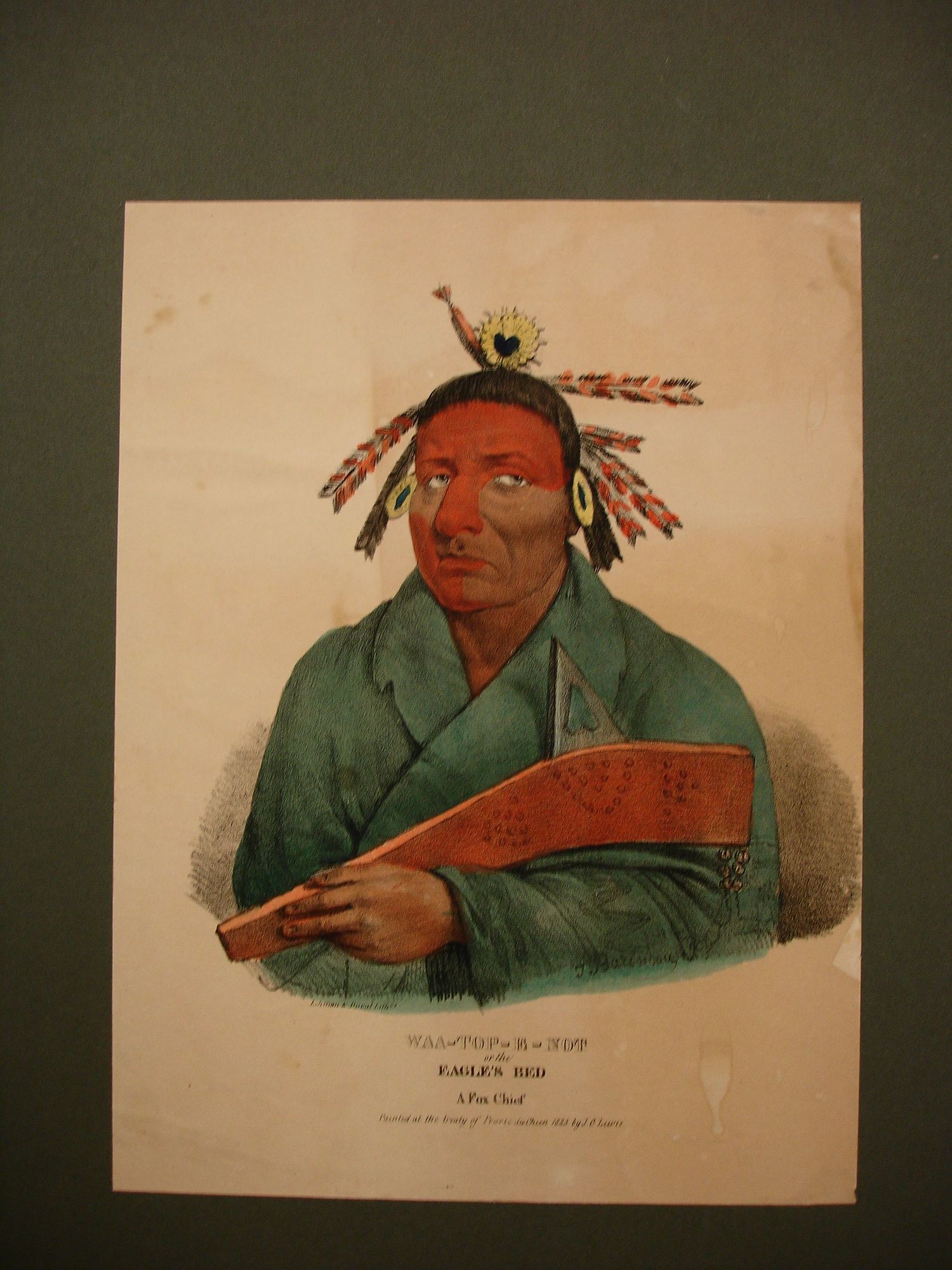 James Otto Lewis (American, 1799 – 1858). Waa-Top-E-Not or the Eagle's Bed, a Fox Chief, issued November 1835. Lithograph with watercolor on paper, 12 5/16 x 9 3/16 in. (31.3 x 23.3 cm). Brooklyn Museum, Brooklyn Museum Collection, X1042.147.15. (Photo: Brooklyn Museum)