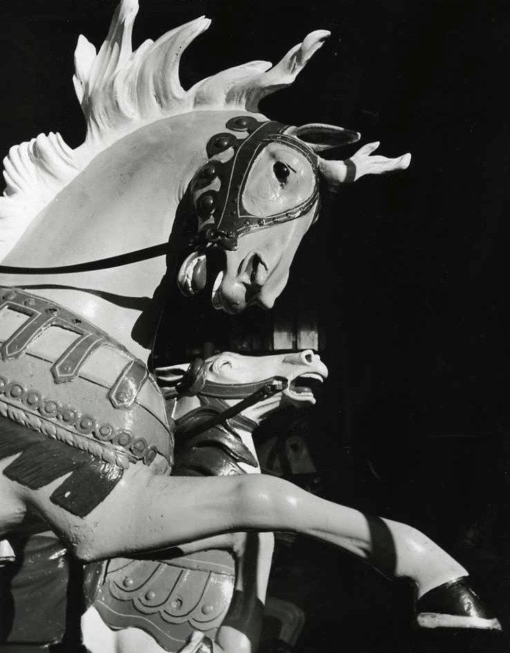 Arthur Tress (American, born 1940). Merry-go-round, Coney Island, NY, 1957. Gelatin silver print, image: 13 3/8 x 10 7/16 in. (34 x 26.5 cm) sheet: 13 15/16 x 10 15/16 in. (35.4 x 27.8 cm). Brooklyn Museum, Gift of William and Marilyn Braunstein, 2009.86.4. (Photo: Brooklyn Museum)