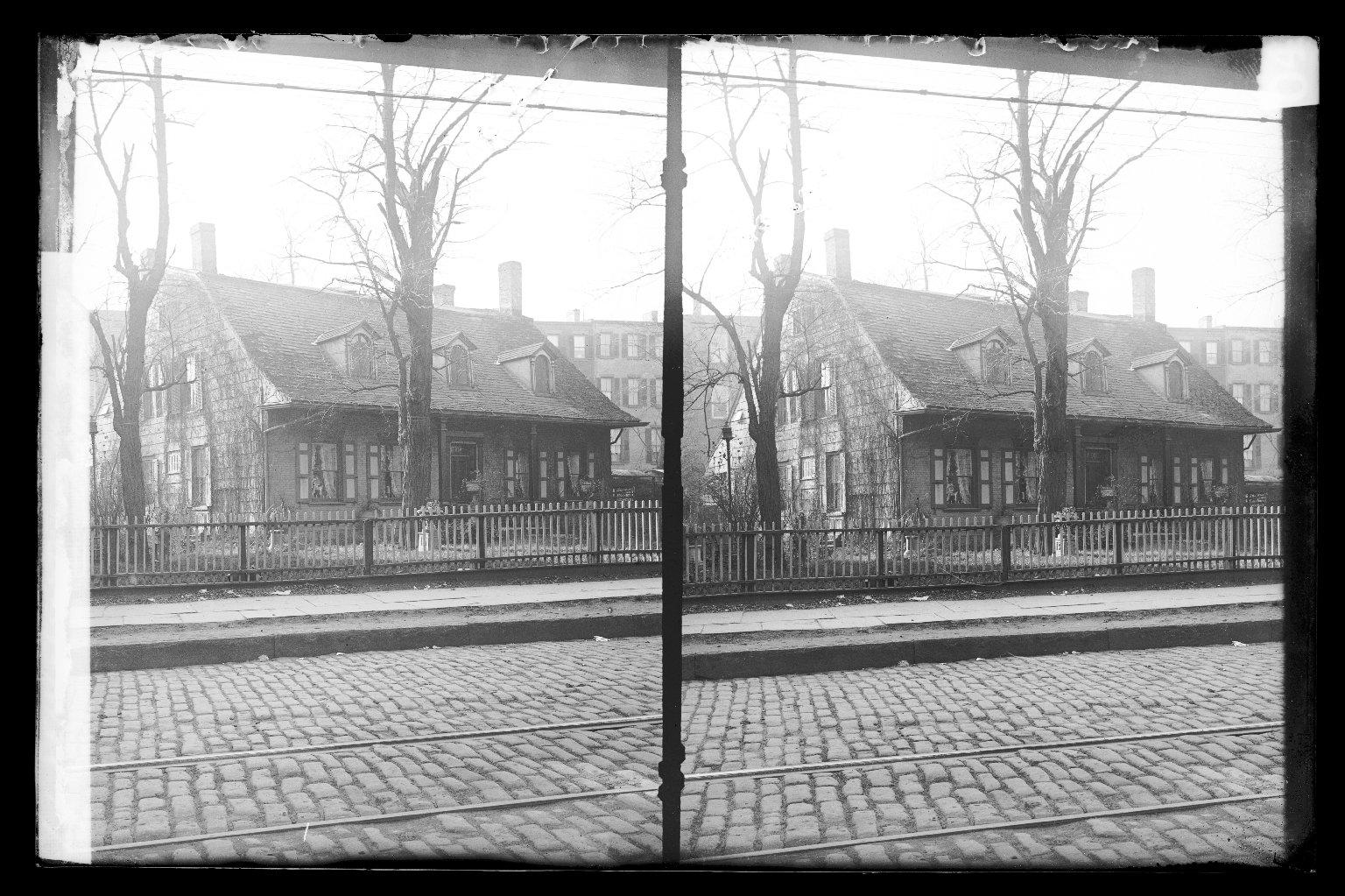 Daniel Berry Austin (American, born 1863, active 1899–1909). Rem Lefferts House, East Gable, Fulton Street opposite Arlington Place near Bedford, Brooklyn, ca. 1899–1909. Gelatin silver glass dry plate negative. Brooklyn Museum, Brooklyn Museum/Brooklyn Public Library, Brooklyn Collection, 1996.164.1-4. (Photo: Brooklyn Museum)