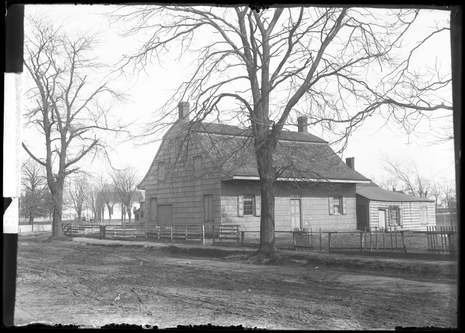 Daniel Berry Austin (American, born 1863, active 1899–1909). Hegeman (Van Wyck) House past Kouwenhoven Lane and Hunter Fly Road junction Kings Highway, Flatlands, April 5, 1903. Gelatin silver glass dry plate negative. Brooklyn Museum, Brooklyn Museum/Brooklyn Public Library, Brooklyn Collection, 1996.164.1-588.
