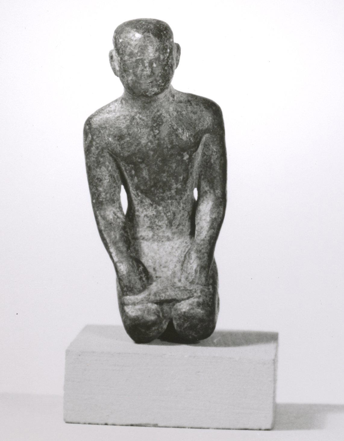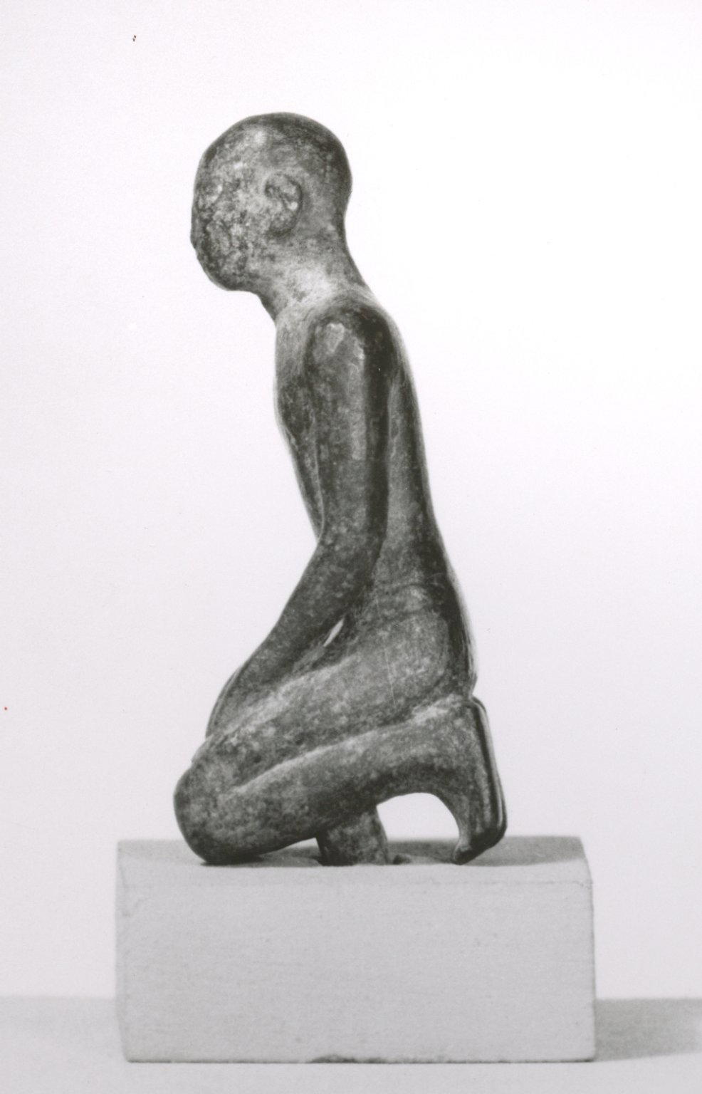 Figure of a Kneeling Man, 664–332 B.C.E., or earlier. Bronze, 1 11/16 x 3/4 in. (4.3 x 1.9 cm). Brooklyn Museum, Charles Edwin Wilbour Fund, 08.480.67. (Photo: Brooklyn Museum)