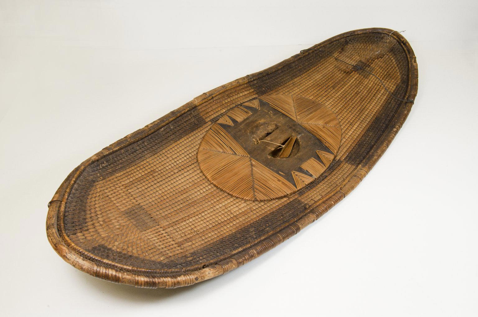 Ngbandi. Shield, late 19th century. Fiber, wood, wire, 37 × 14 3/16 in. (94 × 36 cm). Brooklyn Museum, Museum Expedition 1922, Robert B. Woodward Memorial Fund, 22.846. (Photo: Brooklyn Museum)