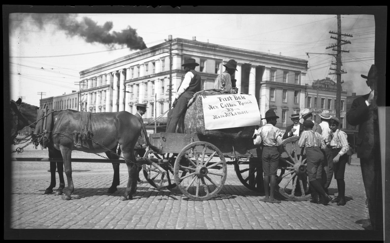 Raoul Froger-Doudement (American, born France, active 1890s–1900s). Men with Wagon Load of Bale of Cotton, ca. 1900. Glass plate negative. Brooklyn Museum, Brooklyn Museum/Brooklyn Public Library, Brooklyn Collection, 1996.164.3-16.
