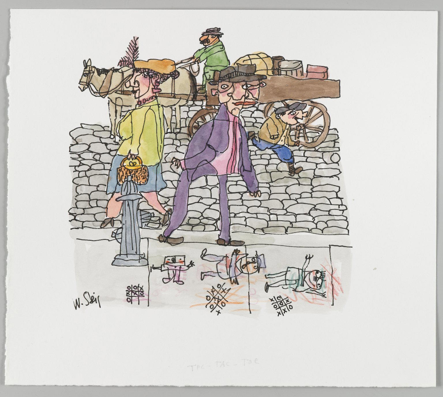 William Steig (American, 1907–2003). [Untitled] (Tic Tac Toe - Couple on Sidewalk, Boy and Wagon Driver), Brooklyn Museum, Gift of Jeanne Steig, 2010.20.51. © Estate of William Steig. (Photo: Brooklyn Museum)