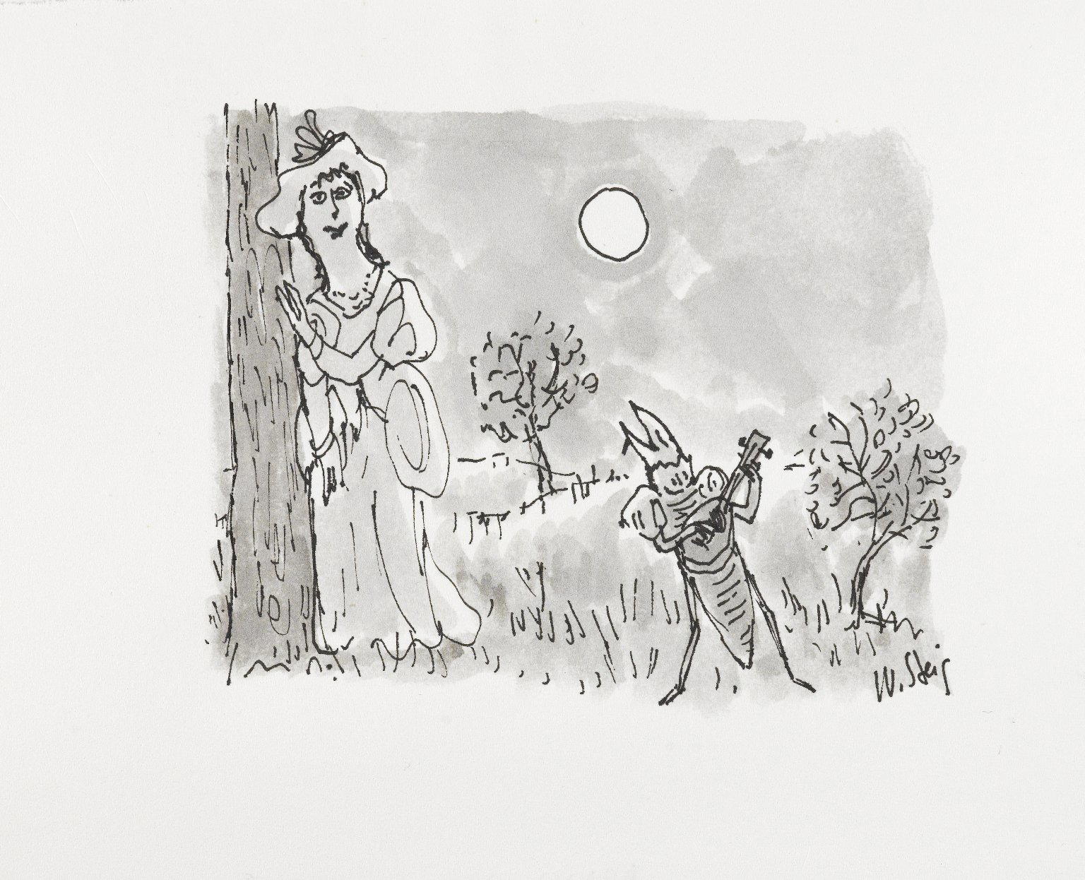 William Steig (American, 1907–2003). [Untitled] (Woman with Singing Cicada), Brooklyn Museum, Gift of Jeanne Steig, 2010.20.79. © Estate of William Steig. (Photo: Brooklyn Museum)