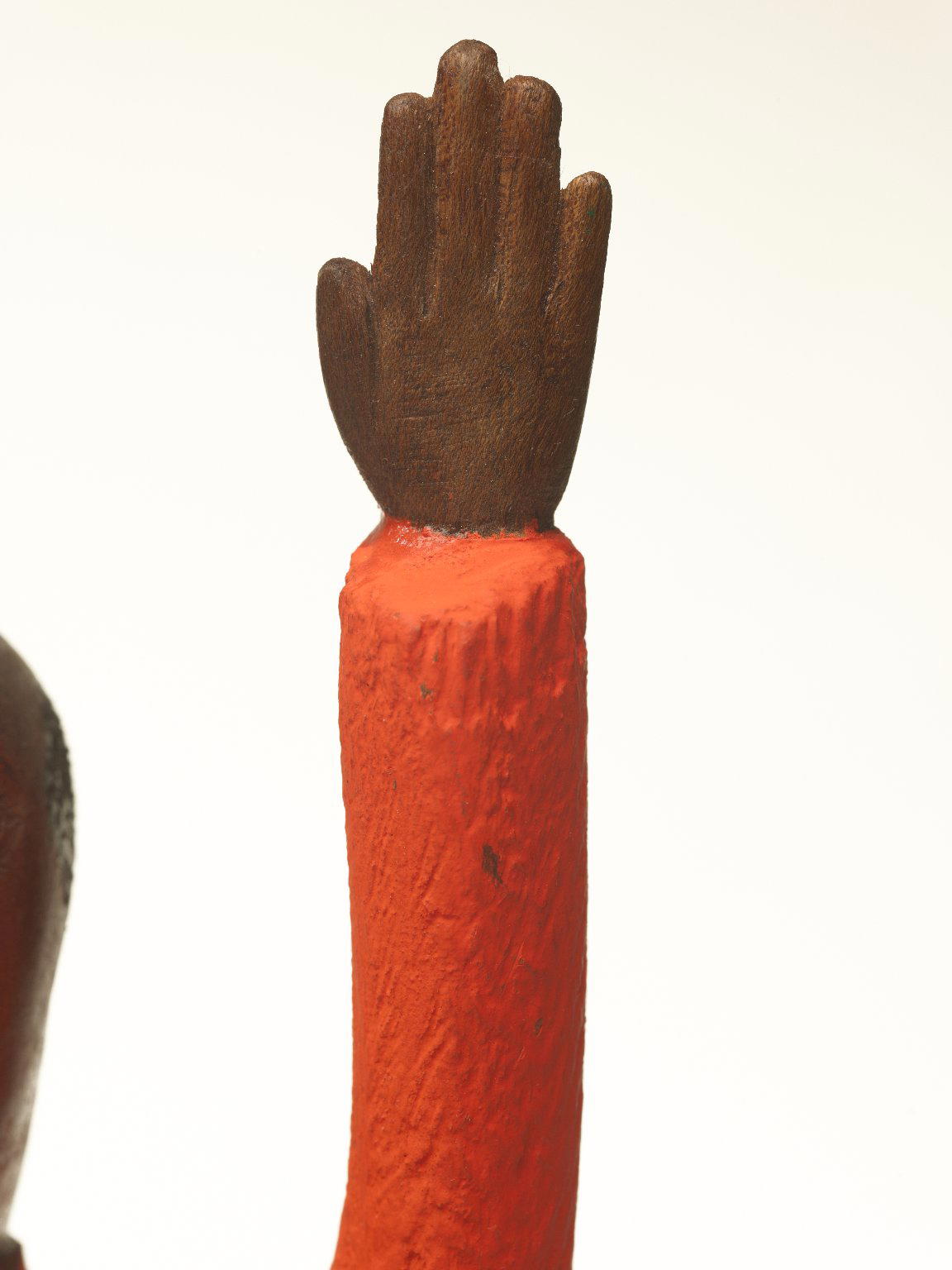 History is about power, and its depiction is a consequential act. These two works—a technically refined casting of precious materials for a powerful monarch, and a group of movable wood figures celebrating a new democratic era—commemorate specific important moments in the political histories of their respective societies.