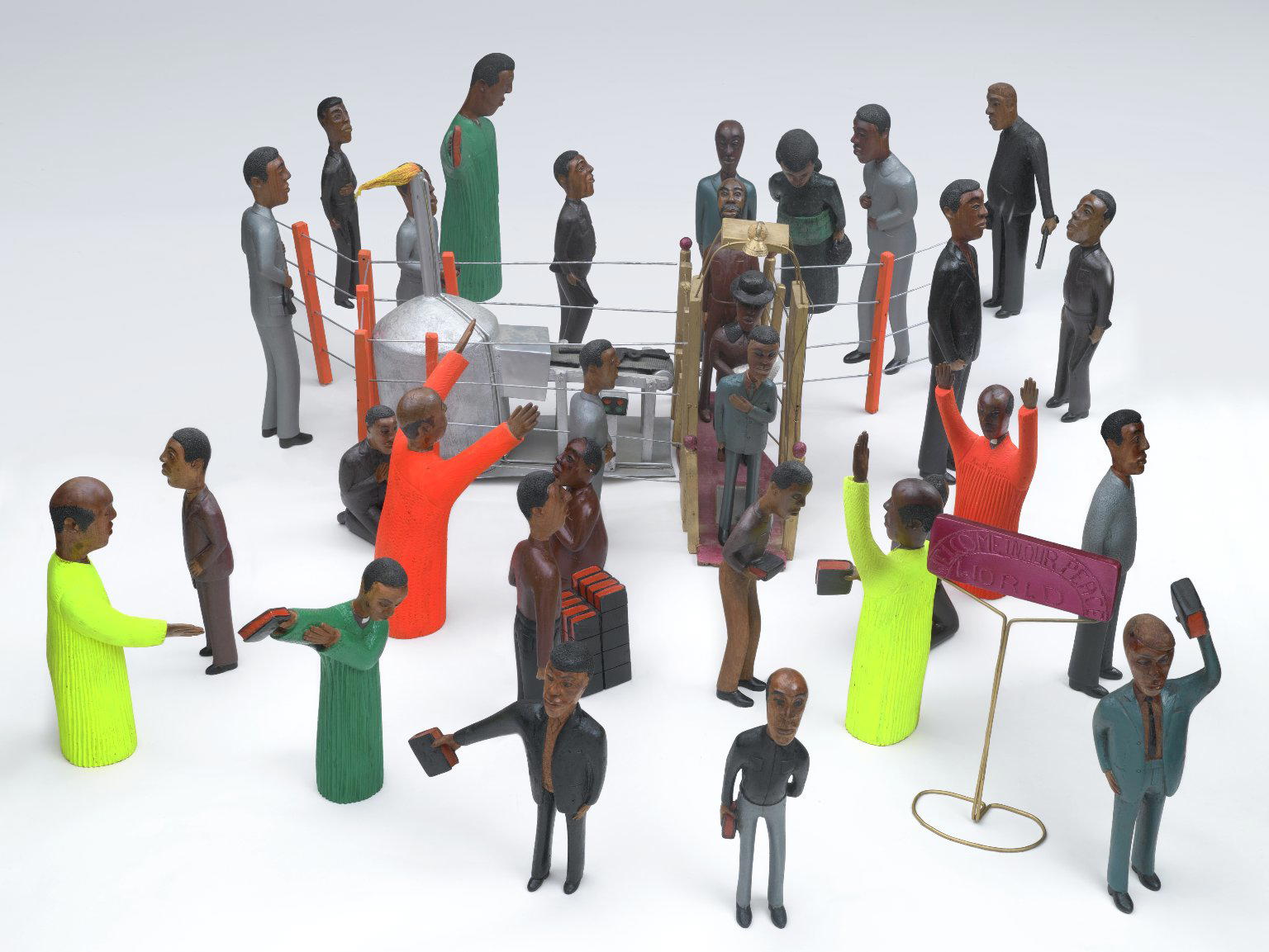 Johannes Mashego Segogela (South African, born 1936). Welcome in Our Peace World, 1993. Wood, paint, wire, synthetic fiber, 17 1/2 x 38 x 66 in. (44.5 x 96.5 x 167.6 cm) [variable]. Brooklyn Museum, Gift of Jerome L. and Ellen Stern, 2010.42. © Johannes Mashego Segogela. (Photo: Brooklyn Museum)