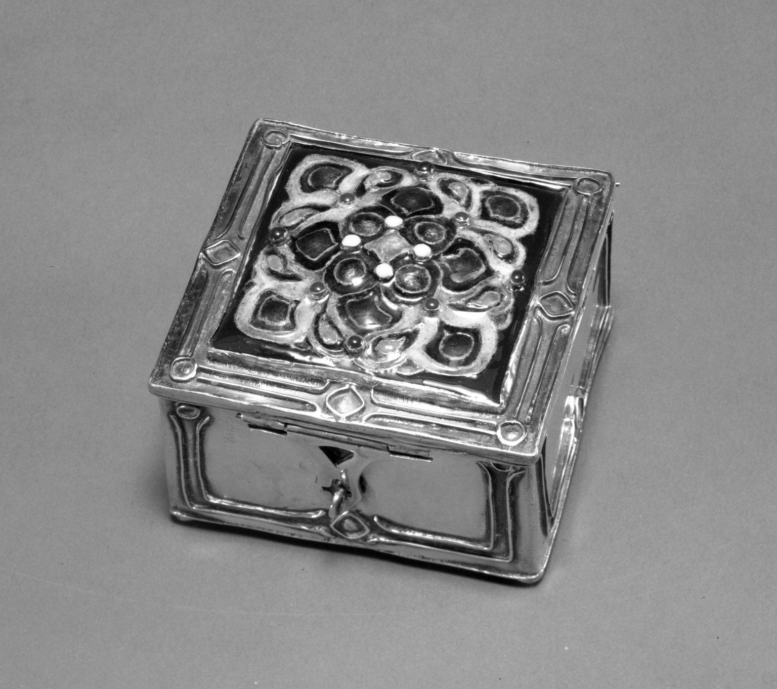 Elizabeth E. Copeland (American, 1866–1957). Box, ca. 1914. Silver, enamel, 2 1/4 x 3 1/8 x 3 1/8 in. (5.7 x 8.0 x 8.0 cm). Brooklyn Museum, Designated Purchase Fund, 1990.96.1. (Photo: Brooklyn Museum)