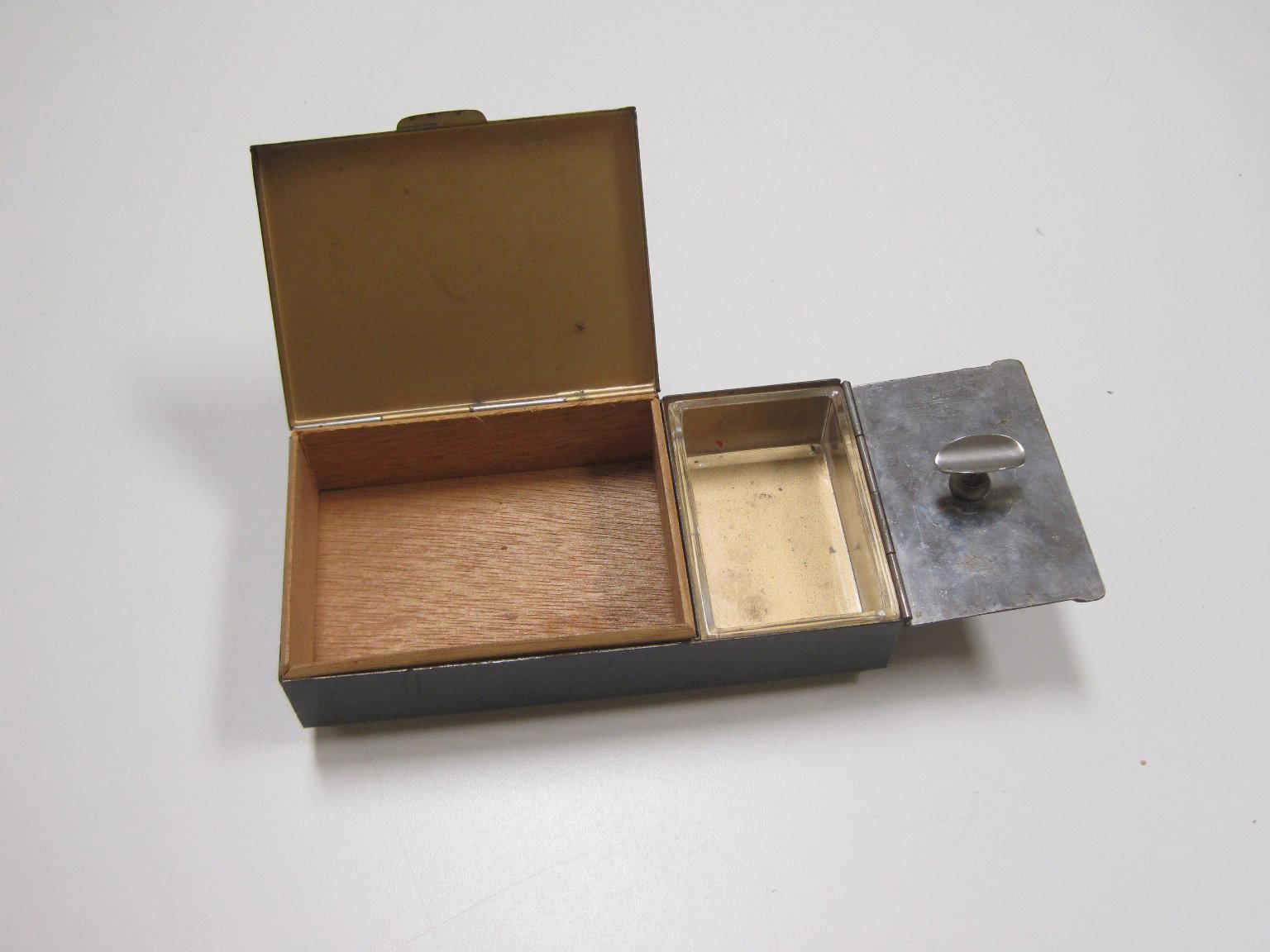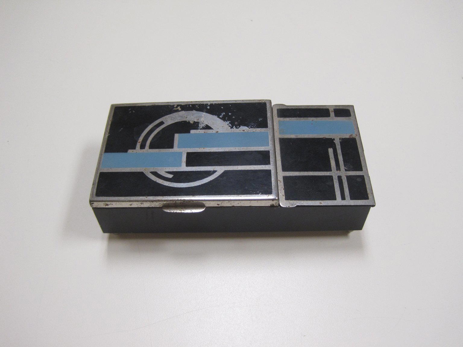 Cigarette Box, ca. 1930. White metal, pigment, wood, glass, 1 1/2 x 5 3/8 x 2 7/8 in. (3.8 x 13.7 x 7.3 cm). Brooklyn Museum, Gift of Arnold Lehman, 2011.15.2. (Photo: Brooklyn Museum)