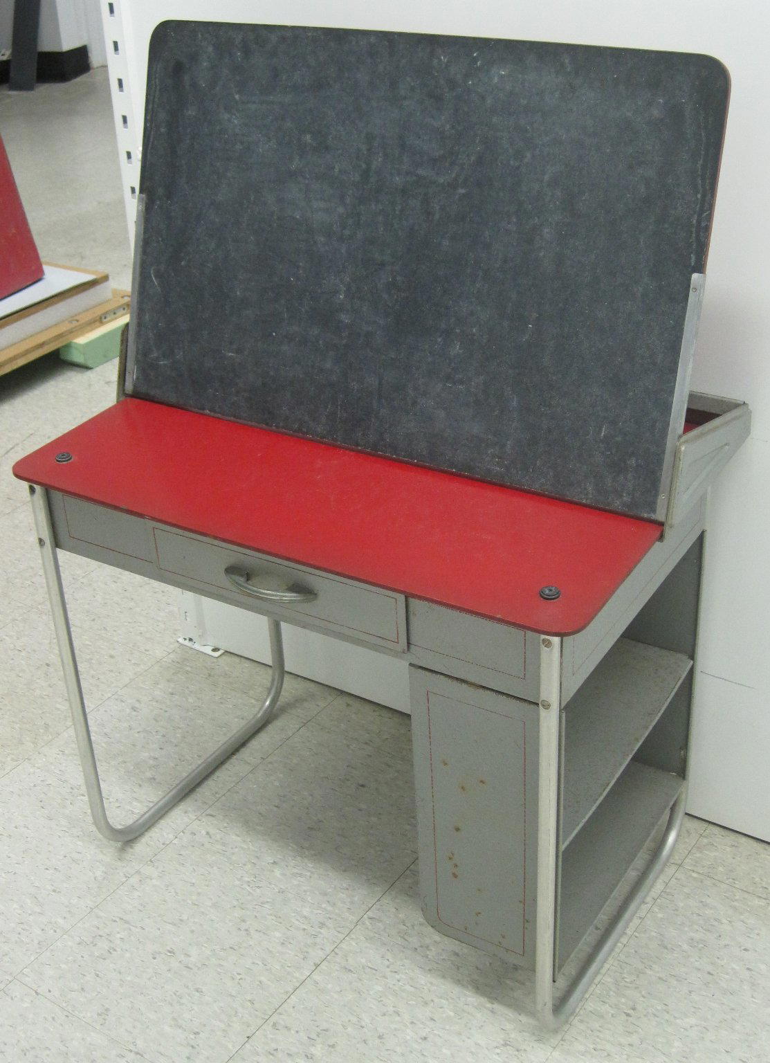 Carl E. Meyerhoefer (German, 1908–1995). Convertible Black-Board Desk, "Lewytoy Line", May 22, 1945 (patent). Steel, chromed tubular steel, particle board, 27 1/2 x 28 1/2 x 17 15/16 in. (69.9 x 72.4 x 45.6 cm). Brooklyn Museum, Gift of Jacqueline Loewe Fowler, 2011.44.1. (Photo: Brooklyn Museum)