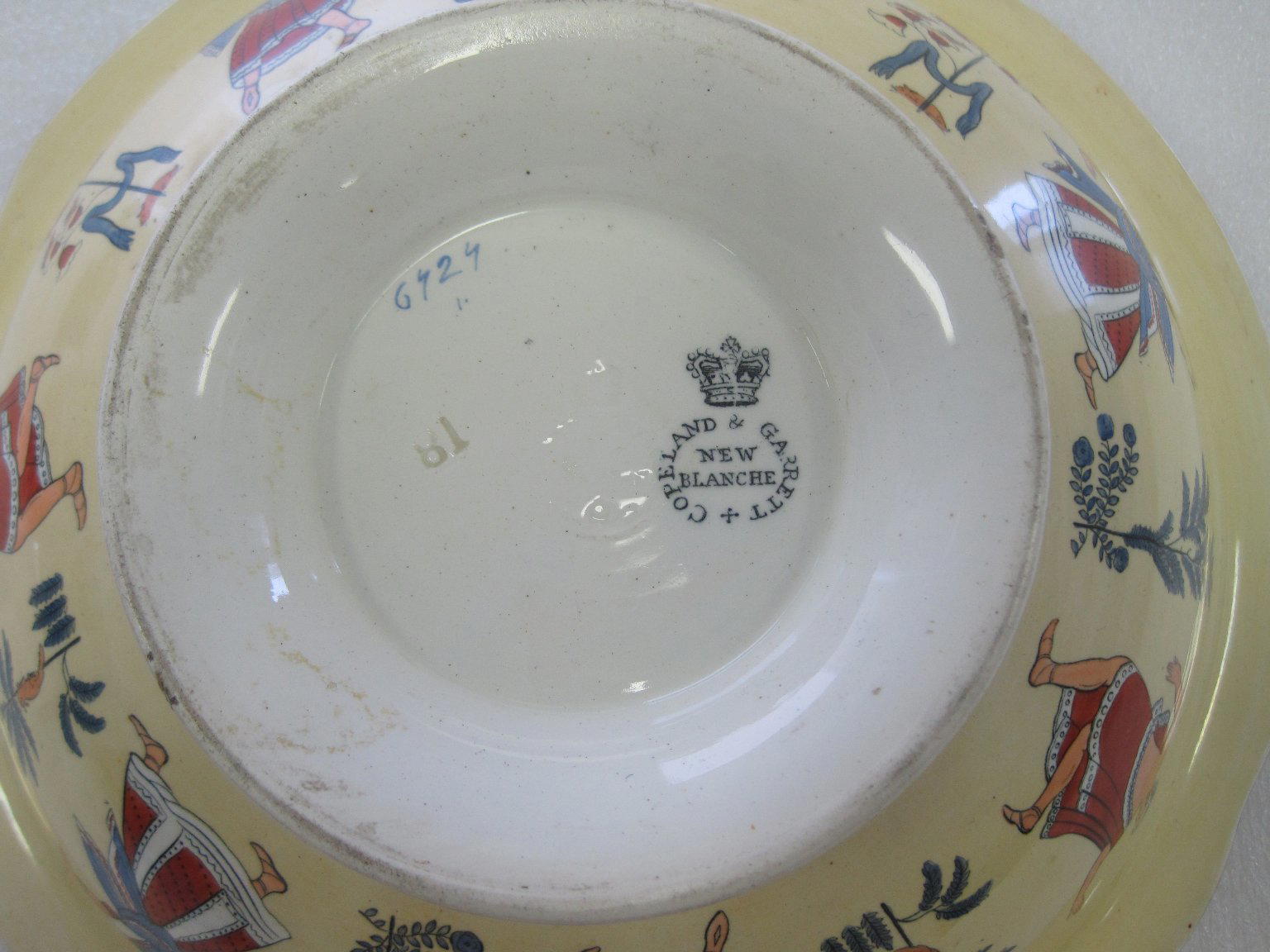 On bottom: Impressed: "81"; Printed in black: "[crown logo]/ COPELAND & GARRETT/ NEW/ BLANCHE"; illegible impressed maker's mark; near outer rim in blue paint: "6424"