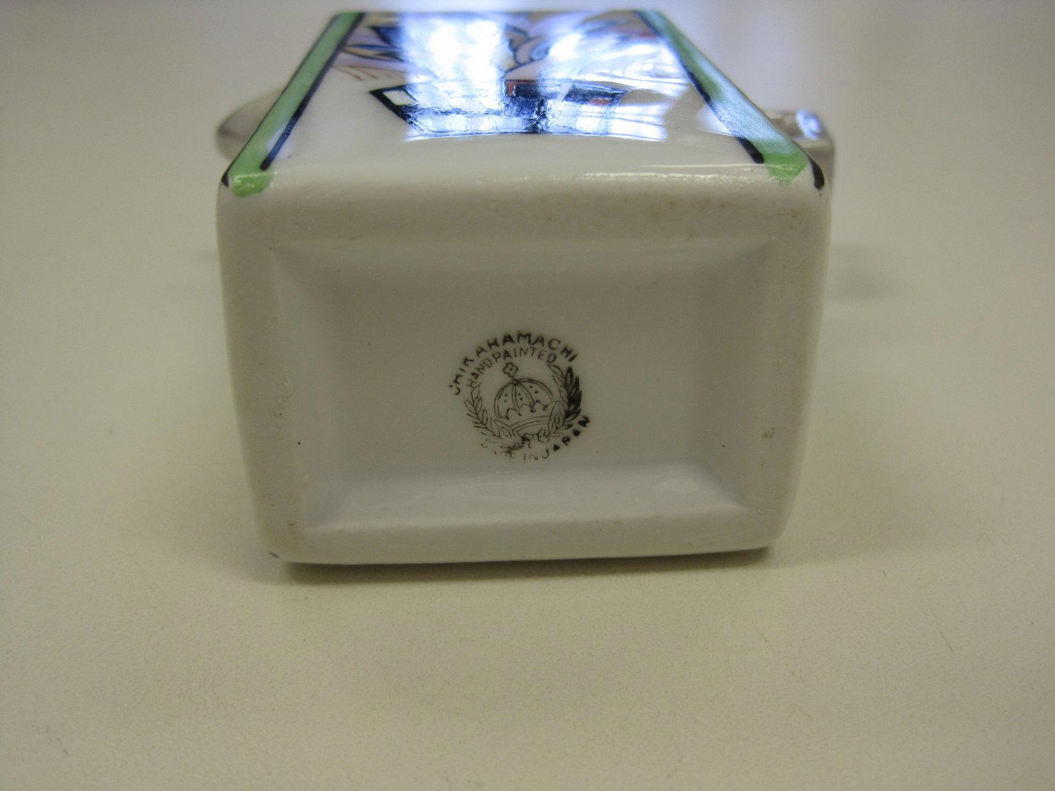 Chikaramachi Co. (1928–1946); a division of Noritake Factory (founded 1878). Vinegar Cruet, from a 6 Piece Condiment Set, ca. 1930. Porcelain , 4 3/4 x 4 1/16 x 1 5/8 in. (12.1 x 10.3 x 4.1 cm). Brooklyn Museum, Gift of Stephen Stark, by exchange, 2013.15.2a-b. (Photo: Brooklyn Museum)