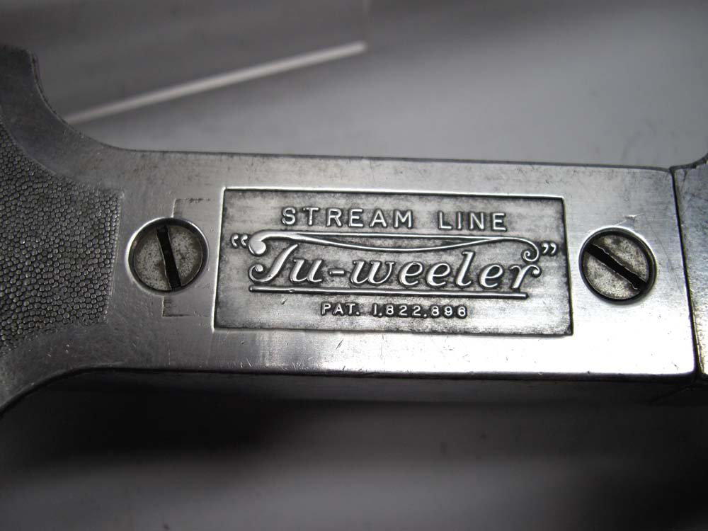 Molded on top iddle of skate: "STREAM LINE/ 'Tu-weeler'/ PAT.1,,822,898" Molded on bottom of skates: "THE HARTFORD/ STEEL BALL CO./ HARTFORD, CONN./ U. S. A."