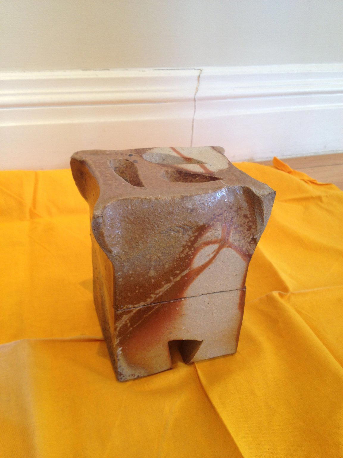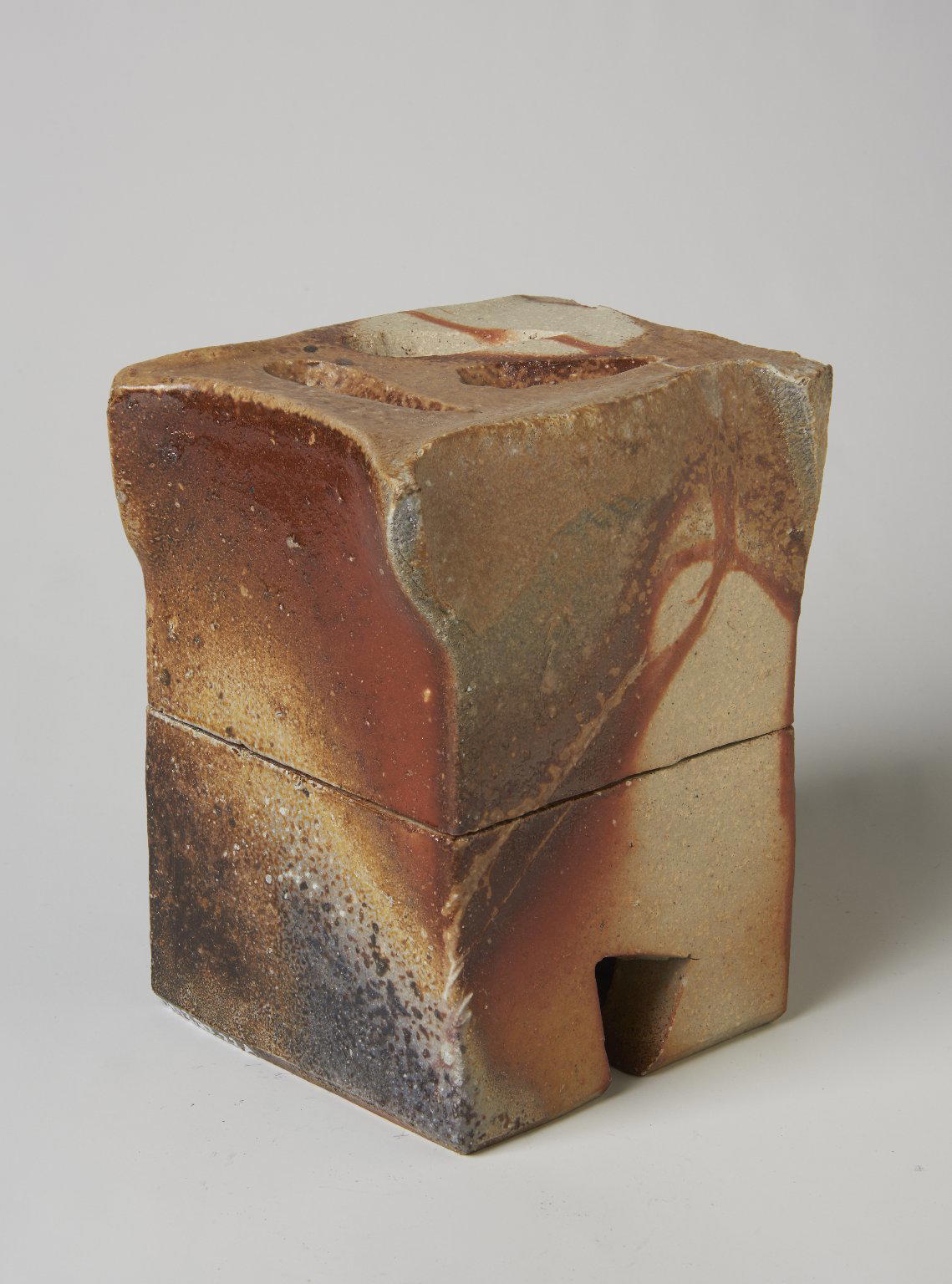Isezaki Jun (Japanese, born 1936). Incense Burner, 2008. Stoneware with ash glaze; bizen ware, 2013.83.22a: 2 3/4 x 3 3/4 x 3 15/16 in. (7 x 9.5 x 10 cm) 2013.83.22b: 5 7/8 x 3 3/4 x 4 3/4 in. (15 x 9.5 x 12 cm). Brooklyn Museum, Gift of Shelly and Lester Richter, 2013.83.22a-b. (Photo: Brooklyn Museum)