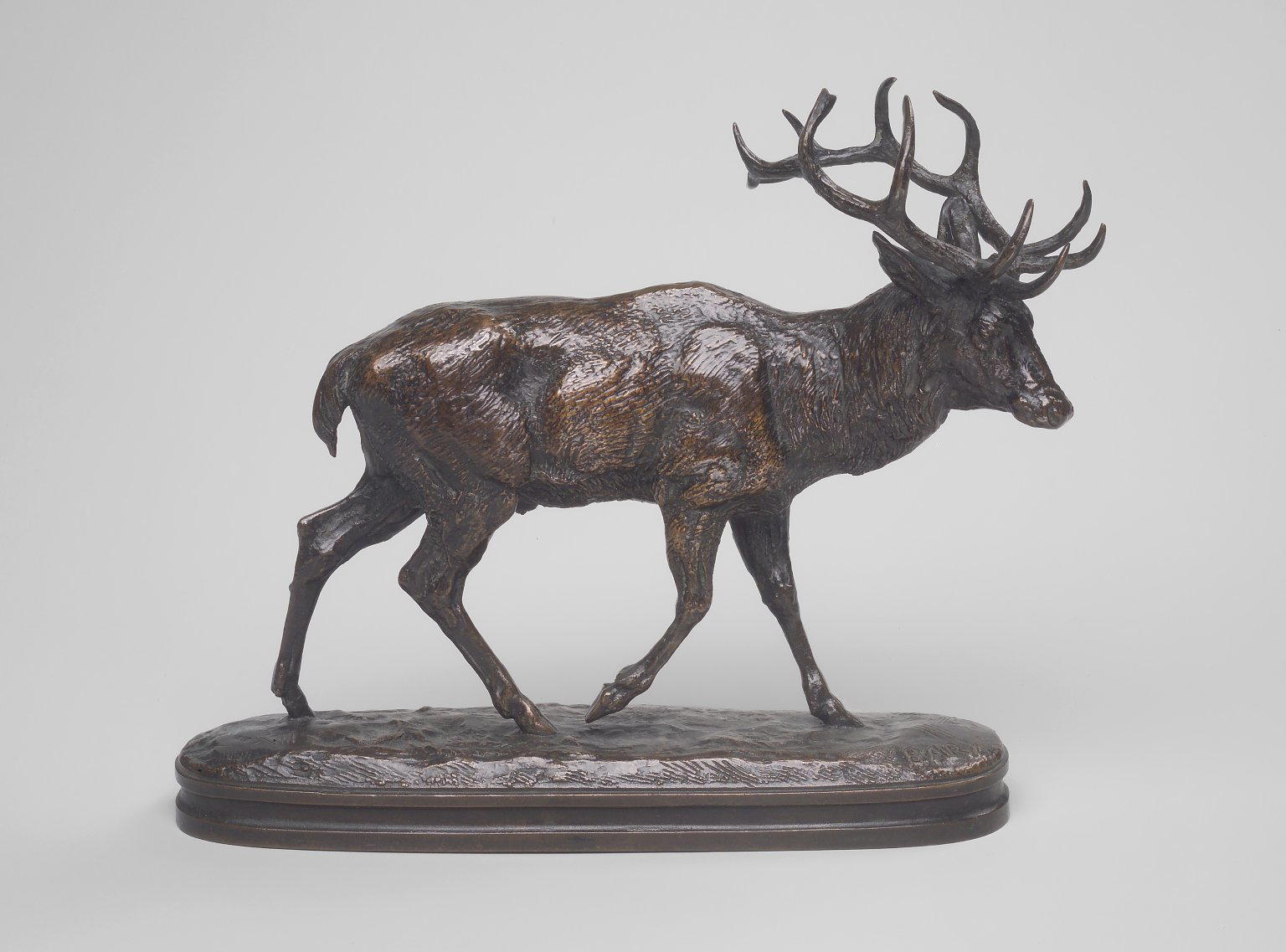 Antoine-Louis Barye (French, 1795–1875). Stag Walking, Bronze, 7 1/8 x 8 1/4 in. (18.1 x 21 cm) Base: 2 1/4 x 8 1/4 in. (5.7 x 21 cm). Brooklyn Museum, Purchased by Special Subscription, 10.142. (Photo: Brooklyn Museum)