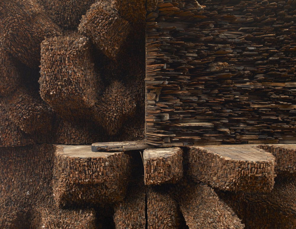 Leonardo Drew (American, born 1961). Number 153, 2012. Wood, 50 x 71 1/2 x 28 in. (127 x 181.6 x 71.1 cm). Brooklyn Museum, Gift of the Contemporary Art Acquisitions Committee, 2014.38a-d. © Leonardo Drew. (Photo: Brooklyn Museum)