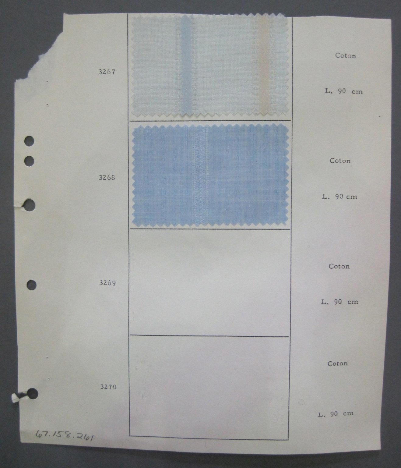 Fab-Tex Inc.. Fabric Swatch, 1963–1966. Cotton, sheet: 8 1/4 x 9 1/2 in. (21 x 24.1 cm) swatches: 2 1/4 x 3 1/4 in. (5.7 x 8.3 cm). Brooklyn Museum, Gift of Fab-Tex Inc., 67.158.261. (Photo: Brooklyn Museum)