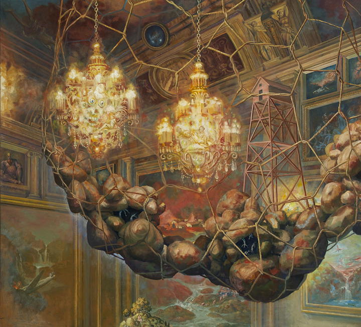 Julie Heffernan (American, born 1956). Self Portrait as Explosive, 2011. Oil on canvas, 62 1/4 × 68 1/4 × 1 7/8 in. (158.1 × 173.4 × 4.8 cm). Brooklyn Museum, Gift of Jonathan Kalb and Catherine Clark Gallery in honor of Arnold Lehman, 2015.16. ©Julie Heffernan. (Photo: Courtesy of Catharine Clark Gallery)