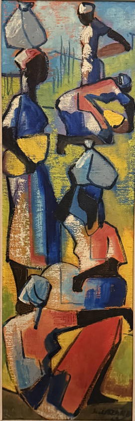 Luckner Lazard (Haitian, 1928–1998). Market Women, 1960. Oil on masonite, sight: 23 1/2 × 7 1/2 in. (59.7 × 19.1 cm) frame: 29 × 13 × 2 1/4 in. (73.7 × 33 × 5.7 cm). Brooklyn Museum, Gift of Vivian D. Hewitt, 2015.14.7. (Photo: Brooklyn Museum)