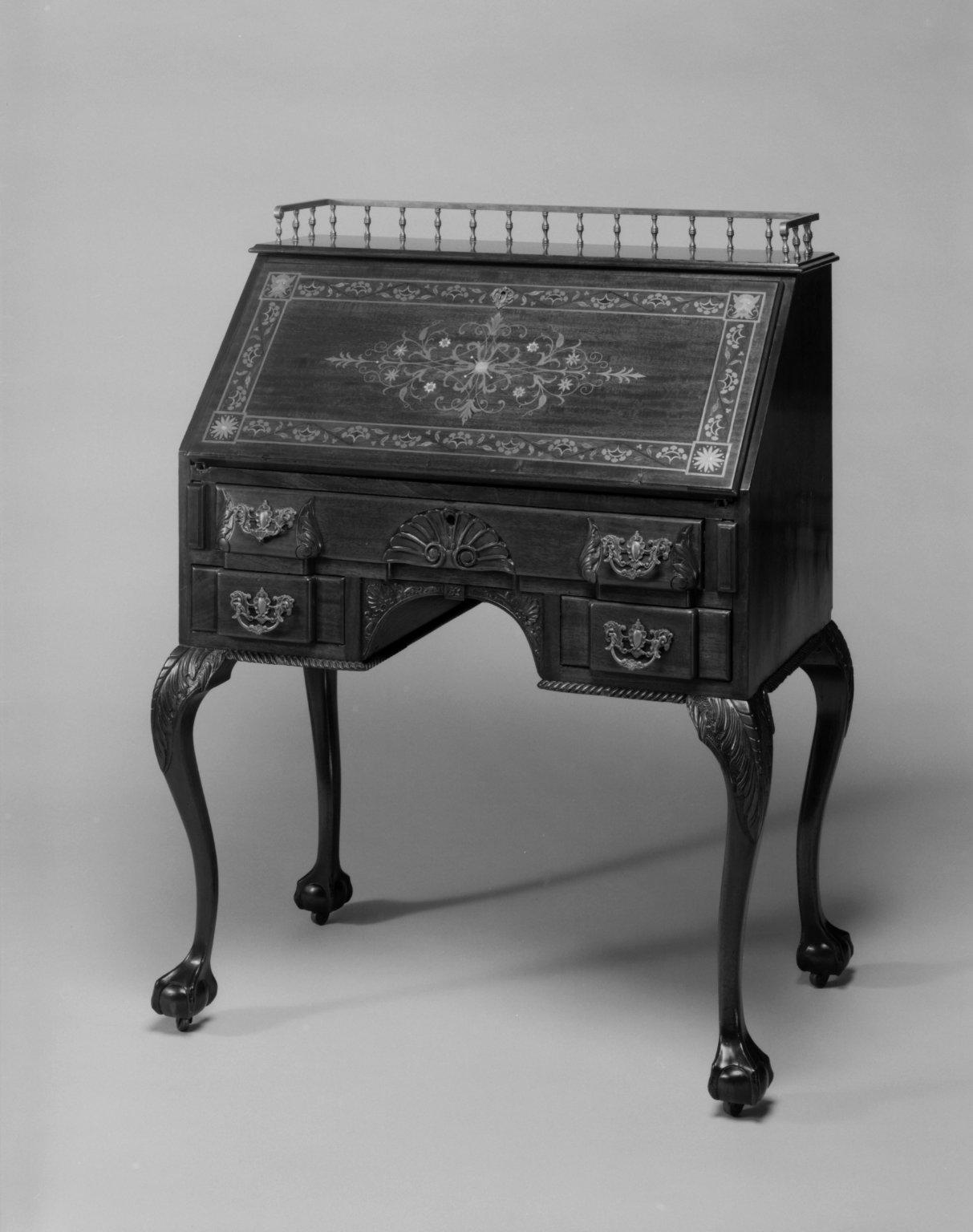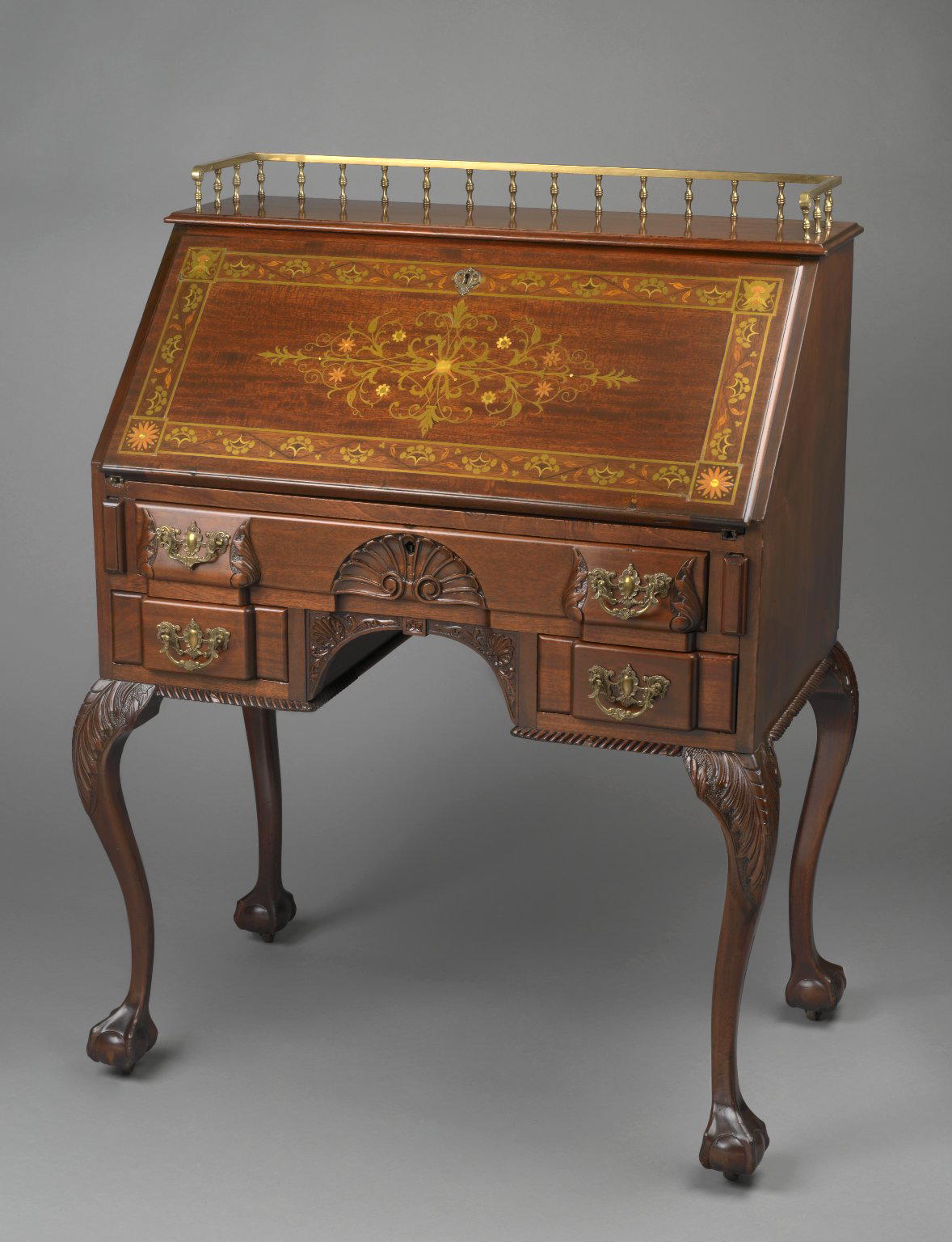 R. J. Horner. Desk, 1890–1895. Various woods, various metals, mother-of-pearl inlay, brass hardware, 42 3/4 x 32 x 19 3/4 in. (108.6 x 81.25 x 50.15 cm). Brooklyn Museum, Alfred T. and Caroline S. Zoebisch Fund, 1993.156. (Photo: Brooklyn Museum)