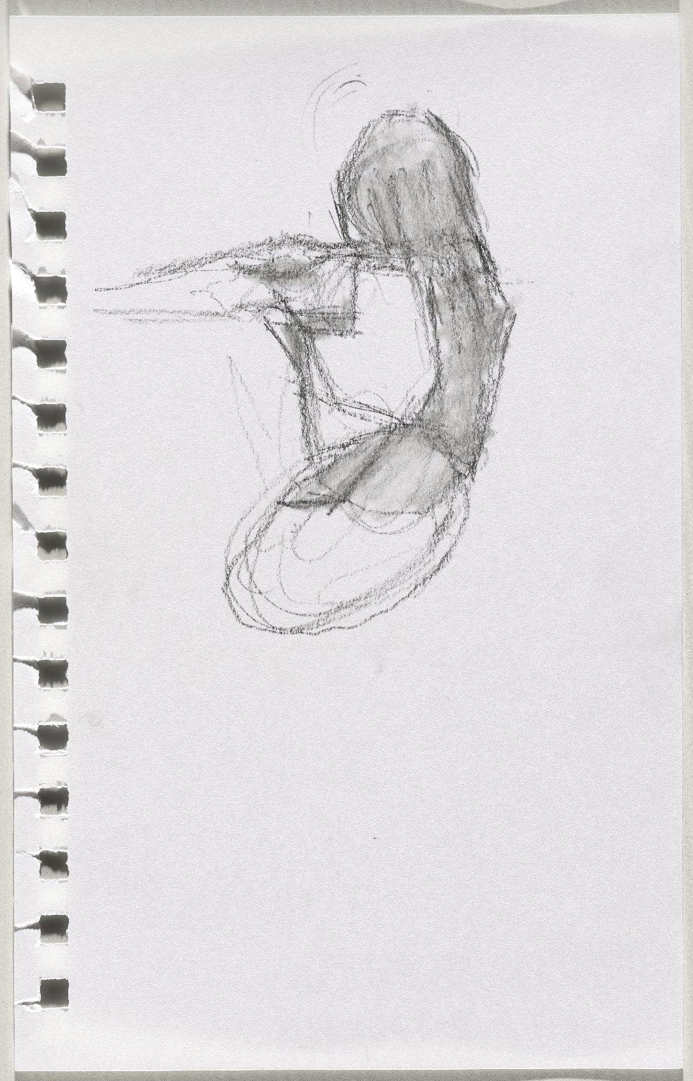 Jeremy Deller (British, born 1966); Maureen McAllister (American, born 1952). Untitled (Sitting Pose) from Iggy Pop Life Class by Jeremy Deller, 2016. Natural charcoal and compressed charcoal pencil with erasing on paper, 8 1/4 x 5 1/4 in. (21 x 13.3 cm). Brooklyn Museum, Brooklyn Museum Collection, 2016.3.10b. (Photo: Brooklyn Museum)