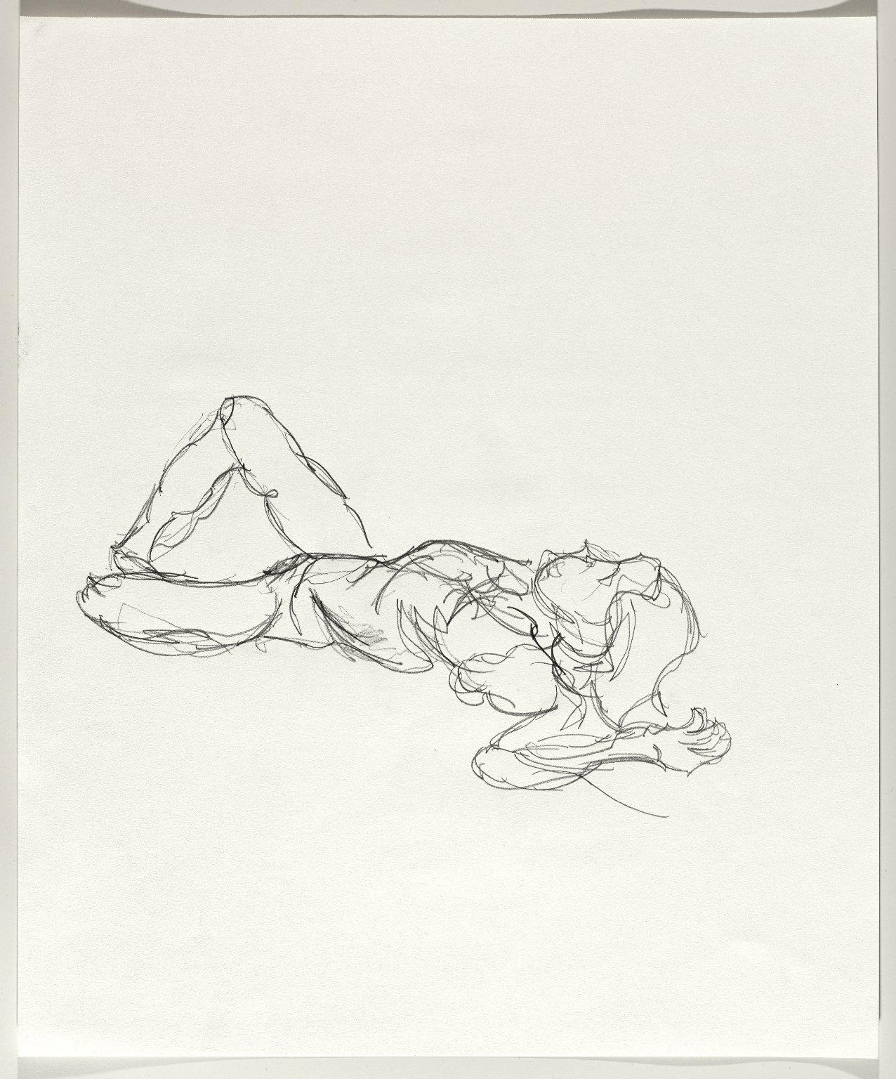Jeremy Deller (British, born 1966); Mauricio Rodriguez (American, born 1996). Untitled (Lying Pose) from Iggy Pop Life Class by Jeremy Deller, 2016. Graphite pencil on paper, 17 x 14 in. (43.2 x 35.6 cm). Brooklyn Museum, Brooklyn Museum Collection, 2016.3.16b. (Photo: Brooklyn Museum)