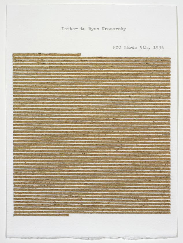 Elena del Rivero. Letter to Wynn Kramarsky, 1996. Metallic gouache, graphite and typed ink on paper, 9 × 6 1/2 in. (22.9 × 16.5 cm) frame: 17 5/8 × 15 × 1 in. (44.8 × 38.1 × 2.5 cm). Brooklyn Museum, Gift of Sarah-Ann and Werner H. Kramarsky, 2017.31.6. (Photo: Courtesy of Werner H. Kramarsky)