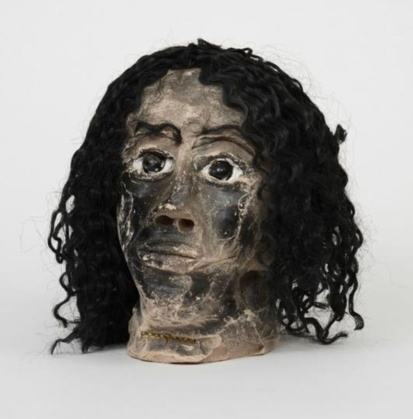 James "Son Ford" Thomas (American, 1926–1993). Untitled, 1987. unfired clay, fiber (artificial hair), metal (iron alloy), glass, overall: 8 × 9 × 9 1/4 in., 9 lb. (20.3 × 22.9 × 23.5 cm, 4.08kg). Brooklyn Museum, Gift of the Souls Grown Deep Foundation from the William S. Arnett Collection, 2018, 2018.28.4.