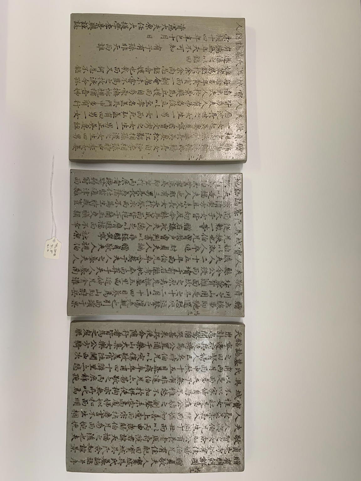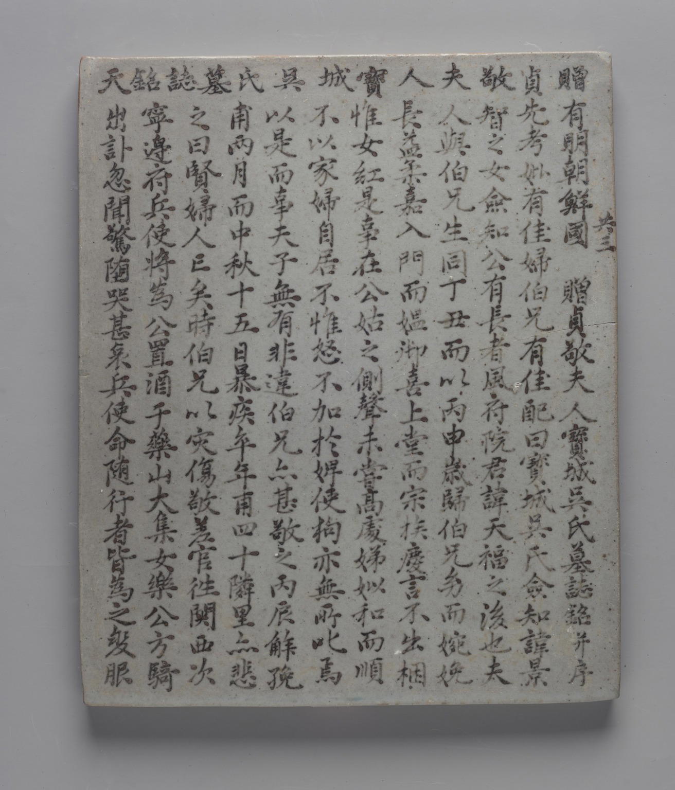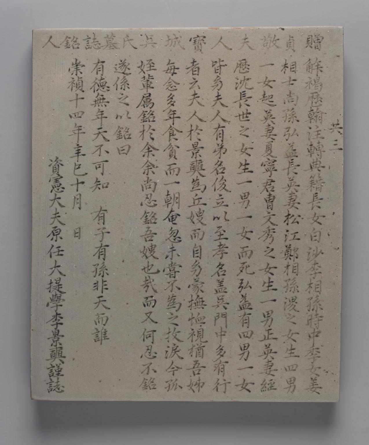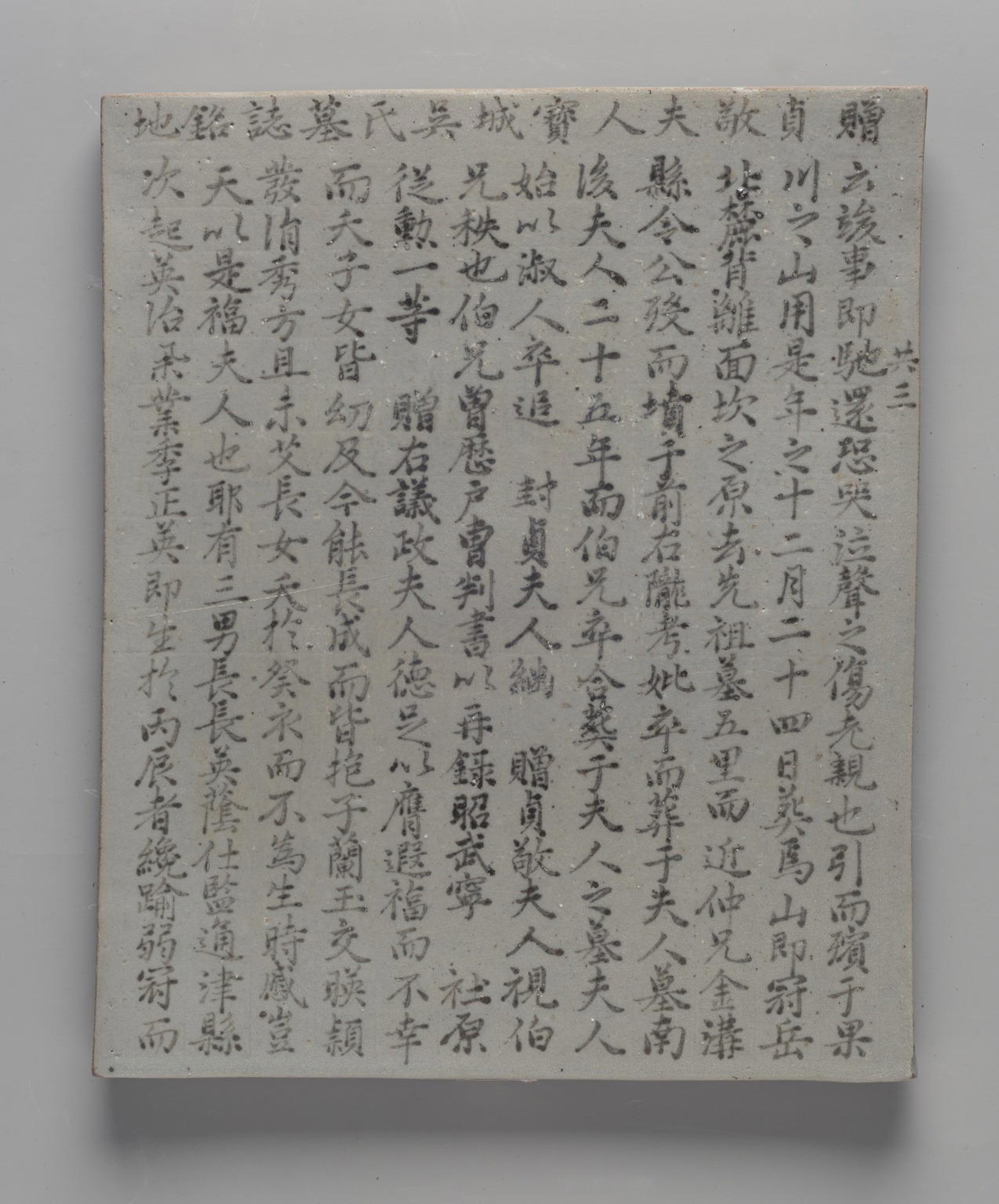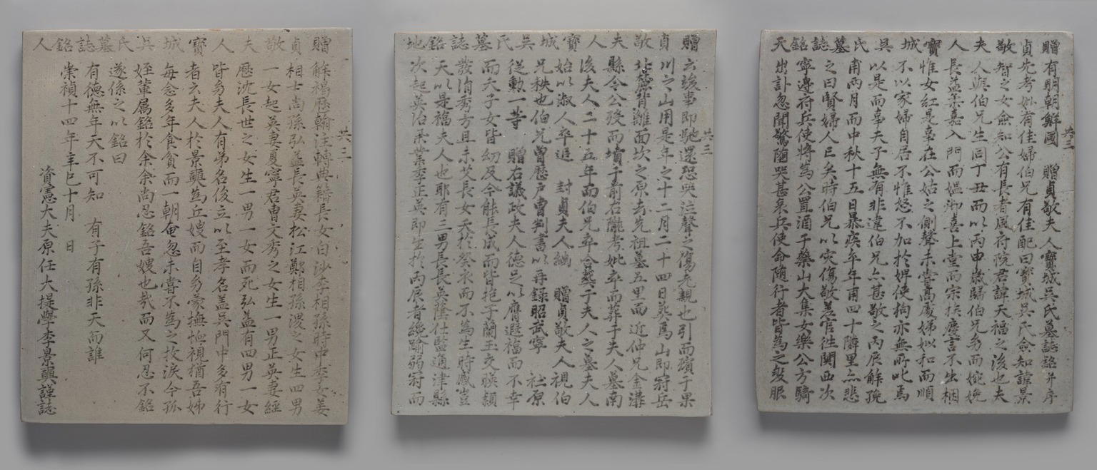 Epitaph Plaques for Yi Kyung-Suk, ca. 1671. Glazed ceramic with underglaze iron red, 9 13/16 × 8 1/16 in. (25 × 20.5 cm). Brooklyn Museum, Gift of the Carroll Family Collection, 2019.42.5a-c. (Photo: Brooklyn Museum)