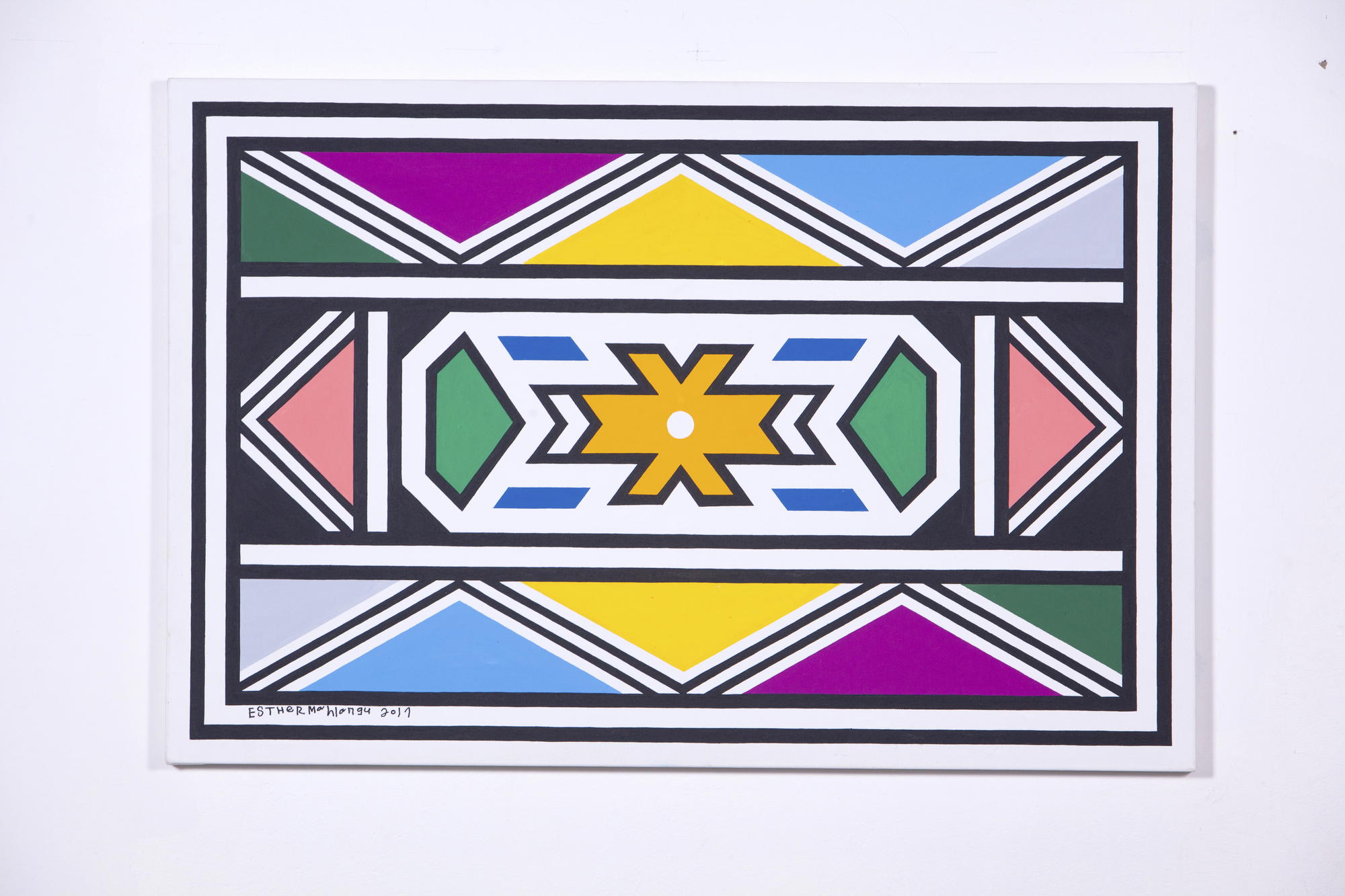 Esther Mahlangu (South African, born 1935). Untitled, 2017. Acrylic on canvas, 39 × 59 in. (99.1 × 149.9 cm). Brooklyn Museum, Gift of Larry Warsh, 2022.60. © Esther Mahlangu. (Photo: Courtesy of Melrose Gallery)