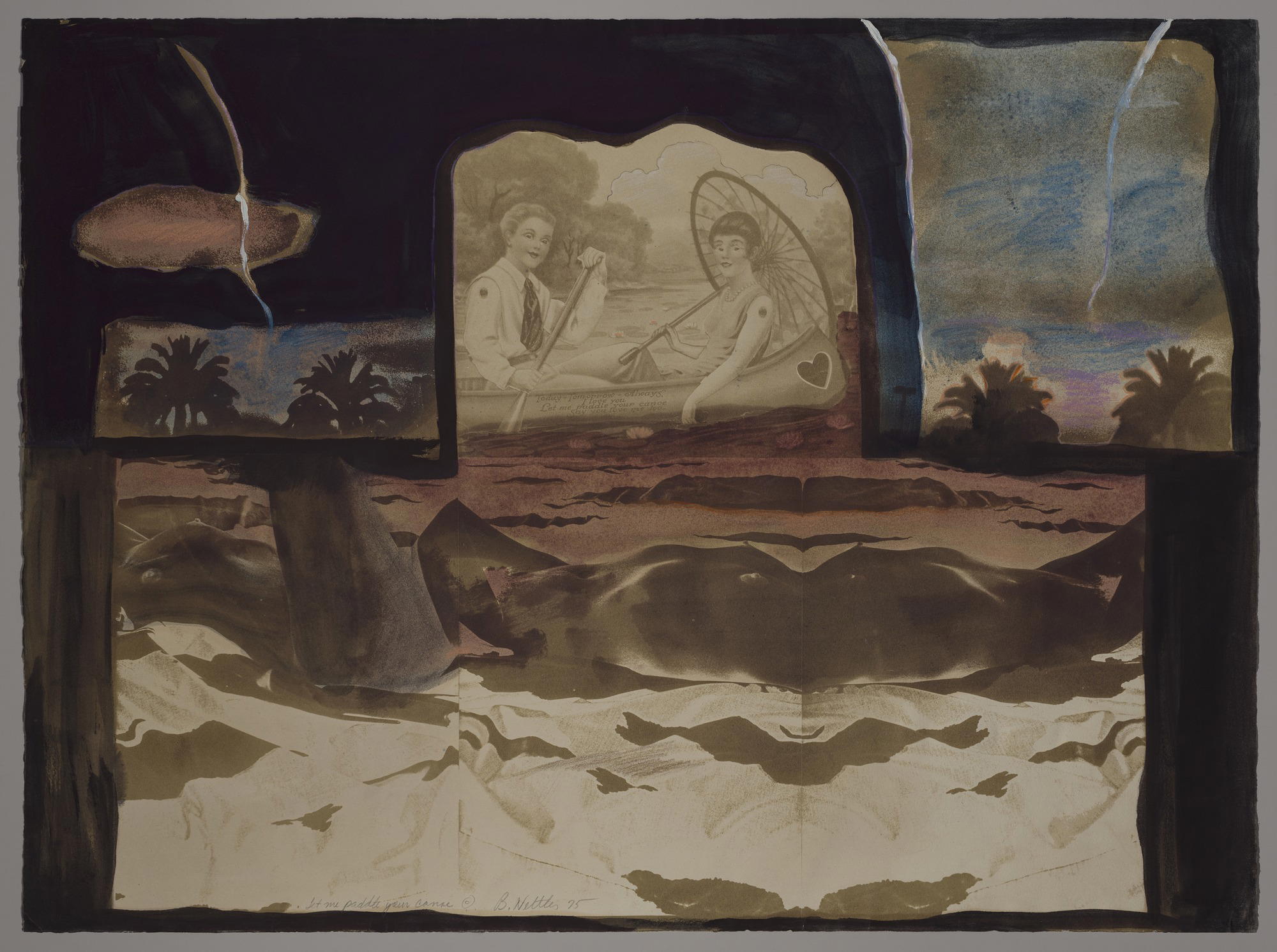 Bea Nettles (American, born 1946). Let Me Paddle Your Canoe, 1975. Printed on artist’s paper using non-silver processes and hand coloring, 19 × 25 in. (48.3 × 63.5 cm). Brooklyn Museum, Gift of the Artist with additional support from the Emily Winthrop Miles Fund, 2023.25.1. © Bea Nettles. (Photo: Brooklyn Museum)