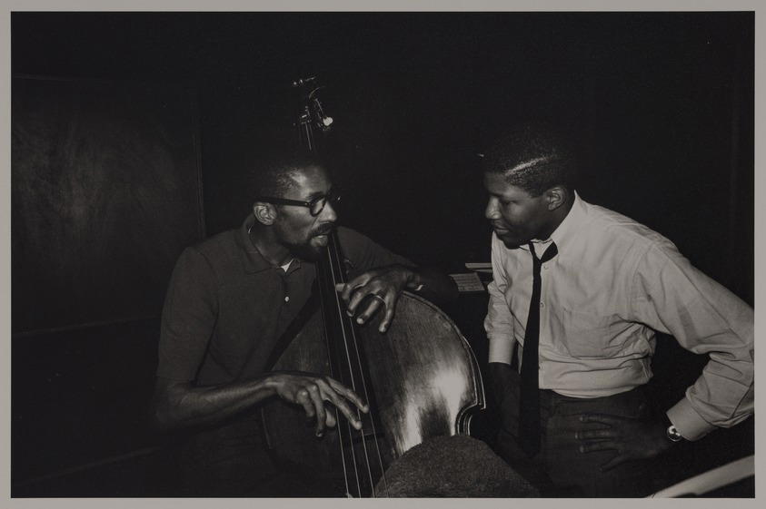 Milt Hinton (born Vicksburg Mississippi, active Chicago, IL, 1910–2000). Ron Carter and Bob Cranshaw, recording studio, N.Y.C., ca. 1971. Gelatin silver print, 11 × 14 in. (27.9 × 35.6 cm). Brooklyn Museum, Gift of David G. Berger and Holly Maxson, 2023.80.10. (Photo: Brooklyn Museum)