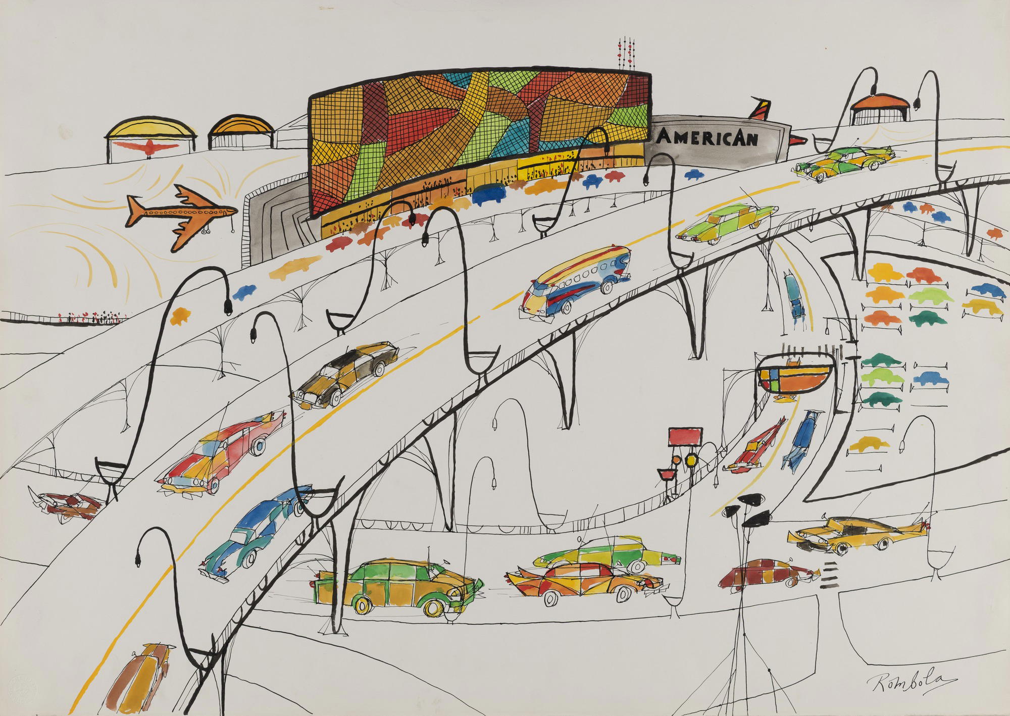 John Rombola (American, born 1933). American Airlines, 1963. Gouache and ink on paper, 29 × 20 1/2 in. (73.7 × 52.1 cm). Brooklyn Museum, Gift of John Rombola, Artist, 2021.49.5. (Photo: Brooklyn Museum)