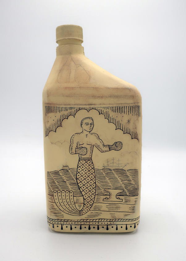 Duke Riley (American, born 1972). No. 16 from the Poly S. Tyrene Memorial Maritime Museum, 2020. Painted, salvaged plastic, ink, wax, 9 × 4 1/4 × 2 1/2 in. (22.9 × 10.8 × 6.4 cm). Brooklyn Museum, Purchase gift of Sharon Fay and Maxine Schaffer, 2023.48.1. © Duke Riley.